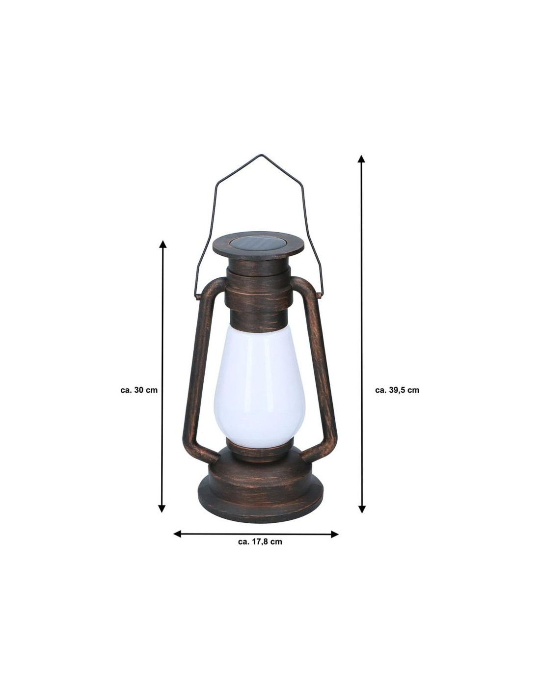 Obudowa lampy przypomina kształtem i kolorystyką starą latarnię, jej oryginalny charakter sprawi, że oświetlisz ciepłym światłem wybrane przez Ciebie miejsca w niecodzienny sposób.