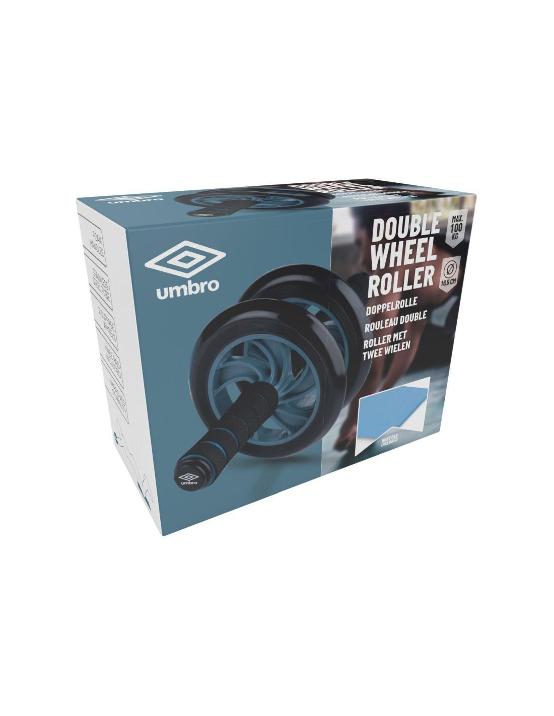 WAŁEK REHABILITACYJNY PODWÓJNY UMBRO NIEBIESKI służy do wzmacniania mięśni brzucha oraz mięśni pleców i ramion, często jest używane w dużych klubach fitness i w domowych siłowniach.