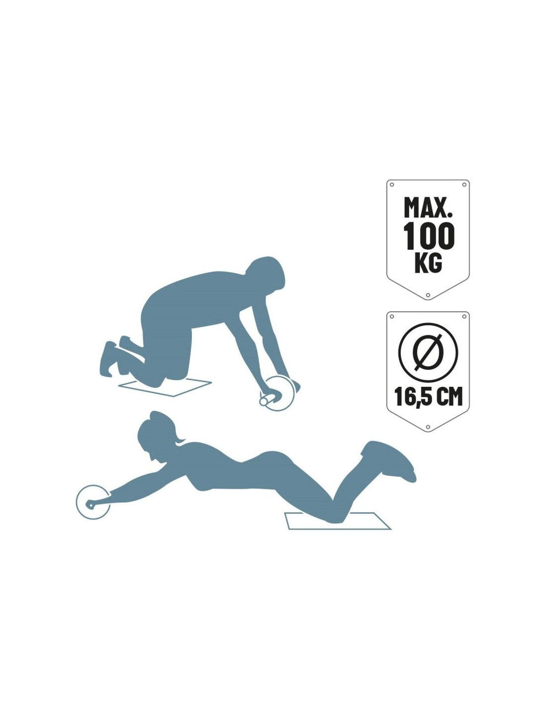 Roller posiada dwa duże kółka prowadzące ułatwiające utrzymanie stabilności podczas wykonywania ćwiczeń.