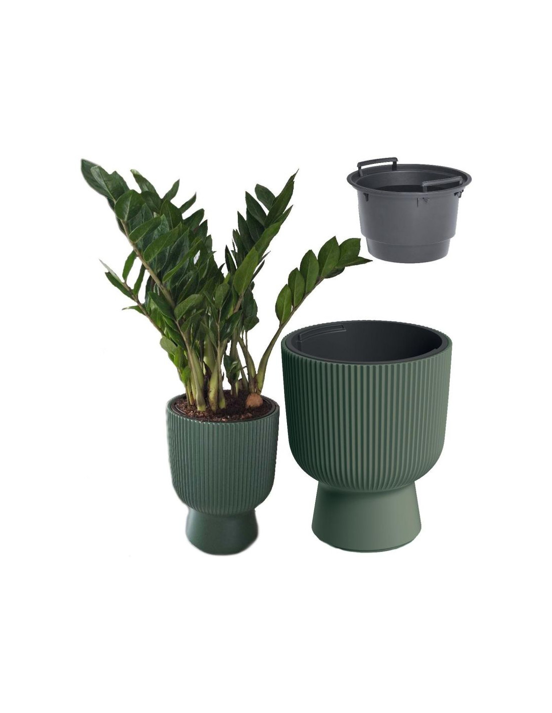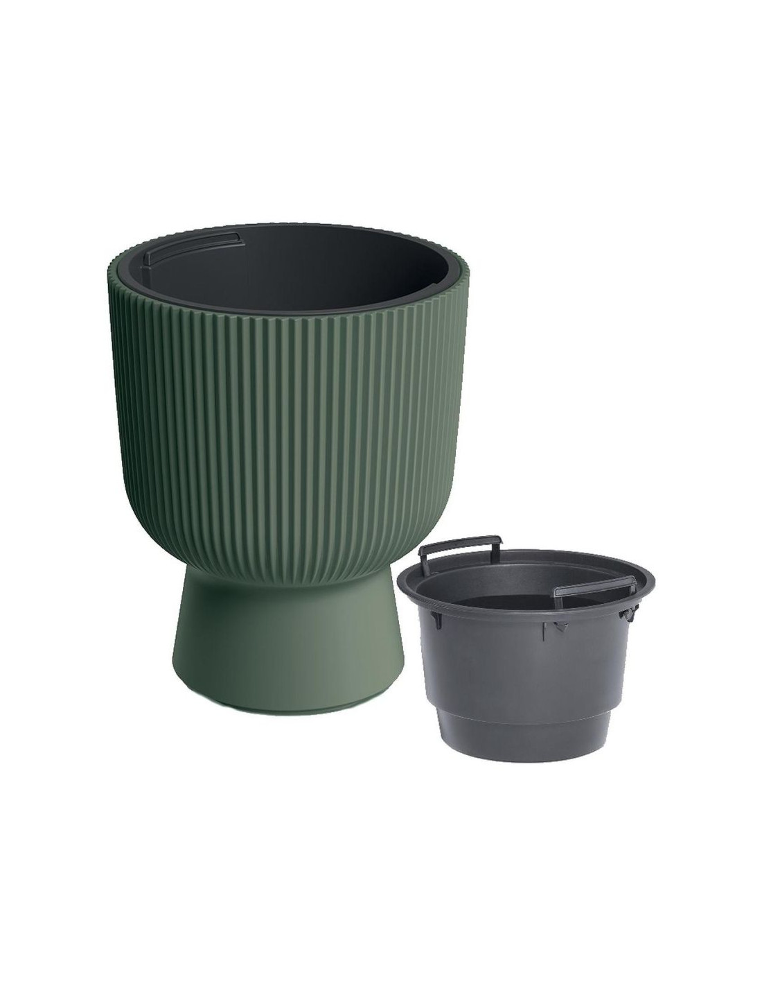 Wyposażona jest w specjalny wkład, dzięki któremu cała doniczka nie musi być wypełniona podłożem dla roślin. Wkład można łatwo wyjąć dzięki uchwytom, uzyskując dostęp do wnętrza doniczki.