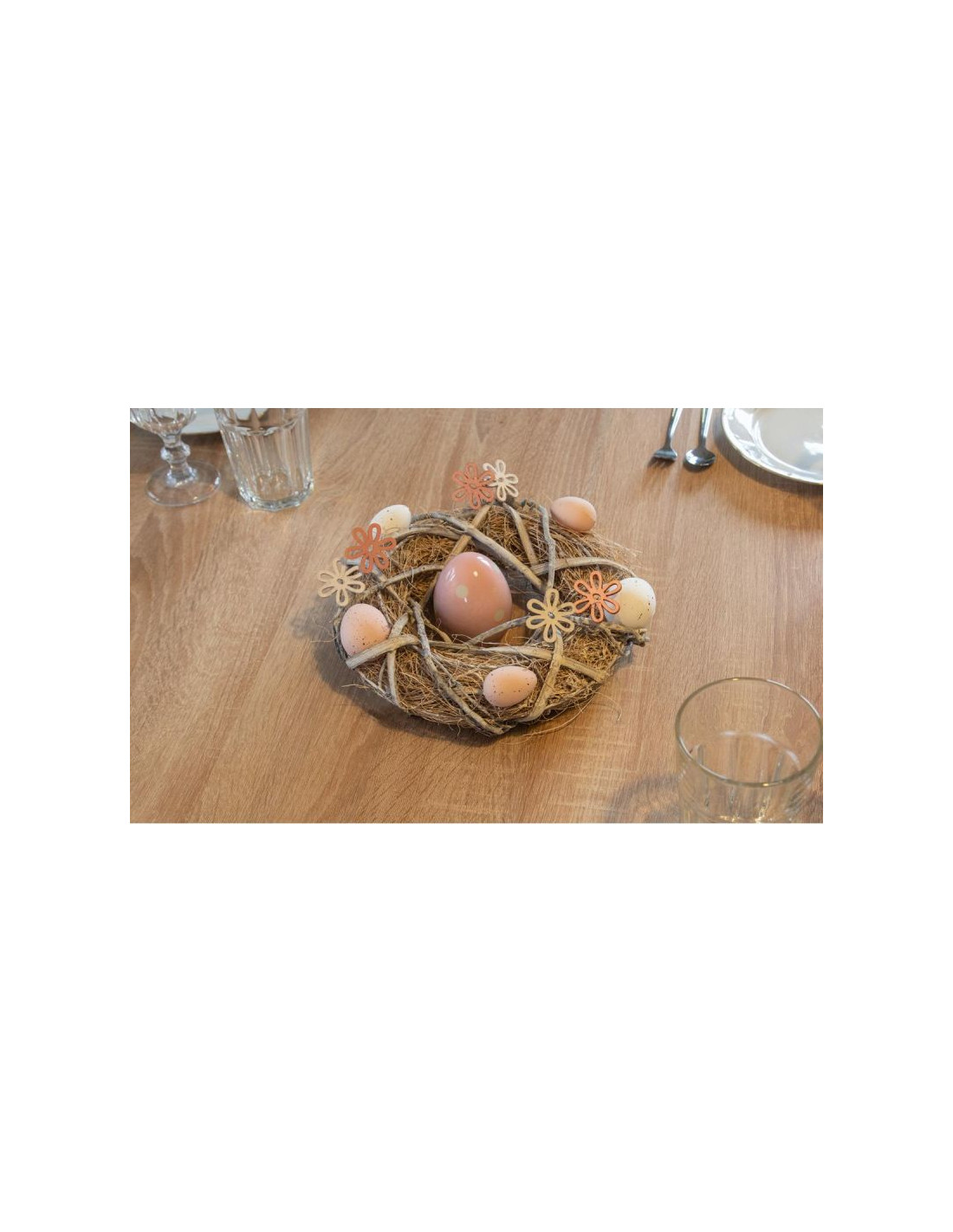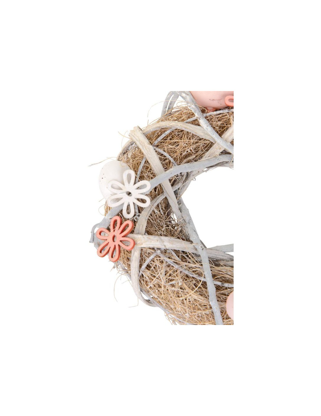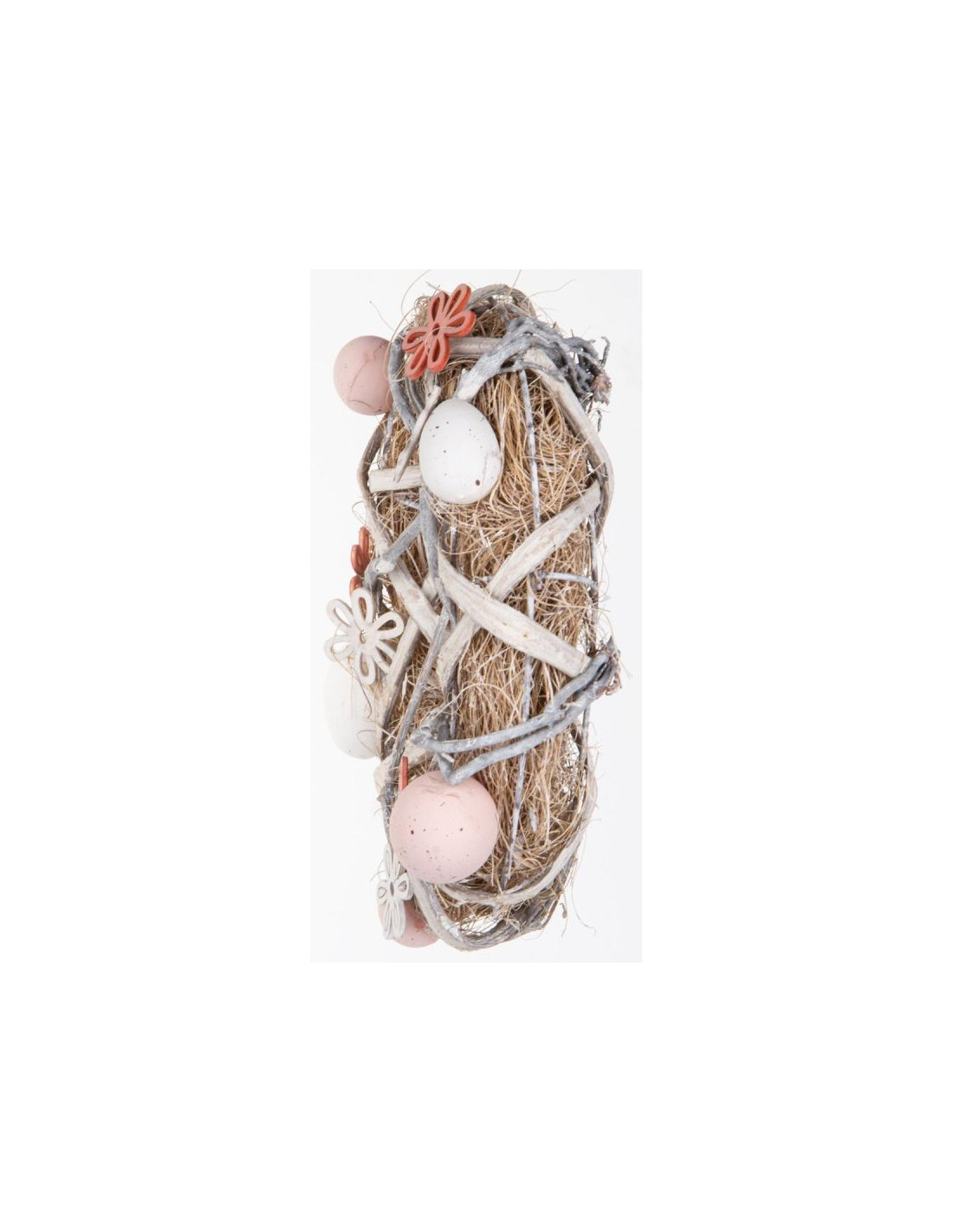 WIANEK STROIK DEKORACYJNY GREY ŚREDNICA 24 CM to urocza wielkanocna dekoracja. Pastelowe kolory wianka, biało - różowe drewniane kwiatki oraz naturalnych kolorów nakrapiane jajka, tworzą kompozycję o niepowtarzalnym charakterze. Wianek pięknie ozdobi Twój dom, a jego kolorystka podkreśli biel obrusu, urok świec, czy połysk sztućców. Wianek może również służyć do udekorowania Twojego miejsca pracy. WIANEK STROIK DEKORACYJNY GREY ŚREDNICA 24 CM został wykonany z dużą starannością, w modnej pastelowej kolorystyce. WIANEK STROIK DEKORACYJNY GREY ŚREDNICA 24 CM będzie się pięknie prezentować na Twoim wielkanocnym stole, na drzwiach, na kominku czy w oknie. Będzie dobrze wyglądać zarówno w nowoczesnym, jak i klasycznym wnętrzu. JEGO KONSTRUKCJA POZWALA NA DODAWANIE INNYCH OZDÓB Wianek stanowi część wielkanocnej kolekcji SASKA EASTER, w której na pewno znajdziesz jeszcze coś uroczego do udekorowania swojego domu!