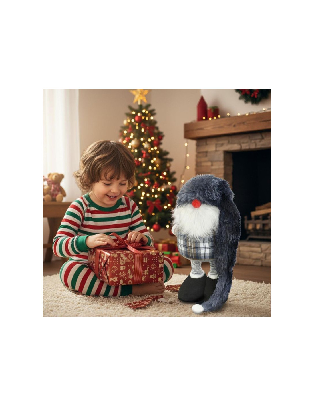 Dzięki teleskopowym nogom możesz ustawić skrzata w niższej lub wyższej pozycji – idealny zarówno na półkę, jak i podłogę. Elastyczność dekoracji to duży atut przy aranżacjach sezonowych.
