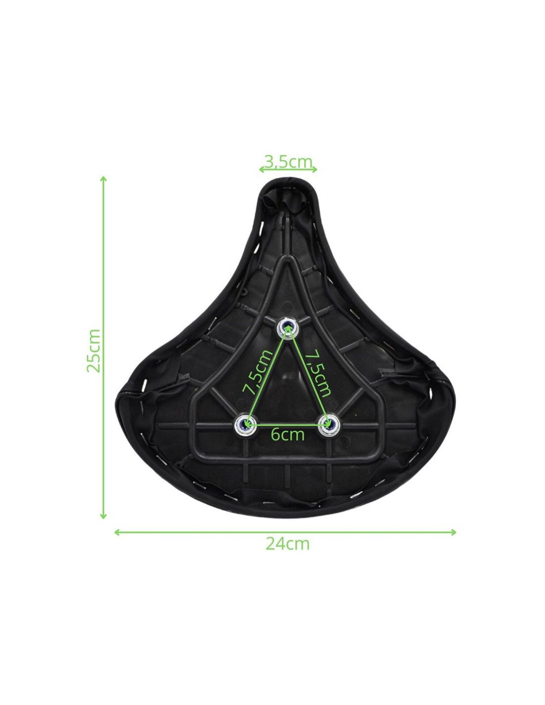 - uniwersalny kształt siodełka daje możliwość dopasowania go do większości rowerków treningowych, wyposażonych w trzy punkty montażu