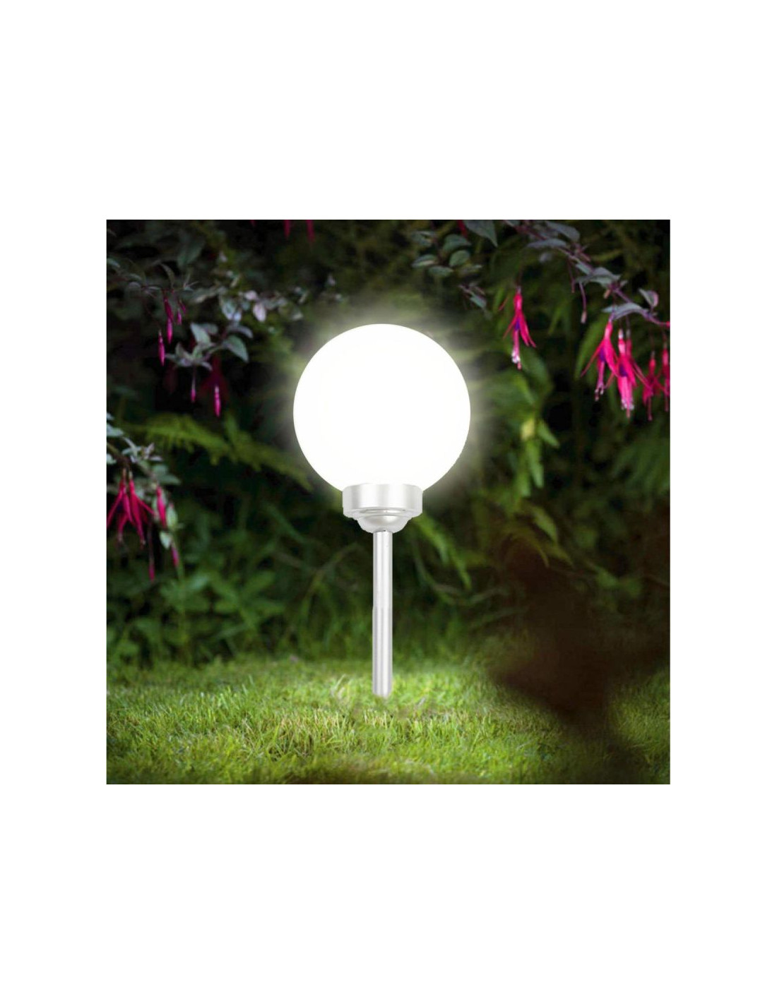 Solarne lampy ogrodowe cieszą się dużym zainteresowaniem i doskonałymi opiniami użytkowników. Nic dziwnego. To najlepsze i zdecydowanie najtańsze źródło energii elektrycznej. OGRODOWA LAMPA SOLARNA KULA MLECZNA ŚR. 20CM 4 LED jest bardzo praktycznym rozwiązaniem. Po zmroku będzie nieco więcej światła, dzięki czemu nie potkniesz się, nie narazisz na upadek, a Twoi goście znajdą drogę do wyjścia. Dzięki niskiej intensywności światła, lampa może też stanowić ciekawe uzupełnienie kompozycji roślinnych. OGRODOWA LAMPA SOLARNA KULA MLECZNA ŚR. 20CM 4 LED najlepiej prezentuje się z kilkoma egzemplarzami w różnych, bądź tych samych wielkościach, podkreślając atmosferę ogrodu i zachwycając grą świateł i cieni zarówno latem jak i zimą. Stwórz swoją galaktykę z OGRODOWĄ LAMPĄ SOLARNĄ KULĄ MLECZNĄ ŚR. 20CM 4 LED