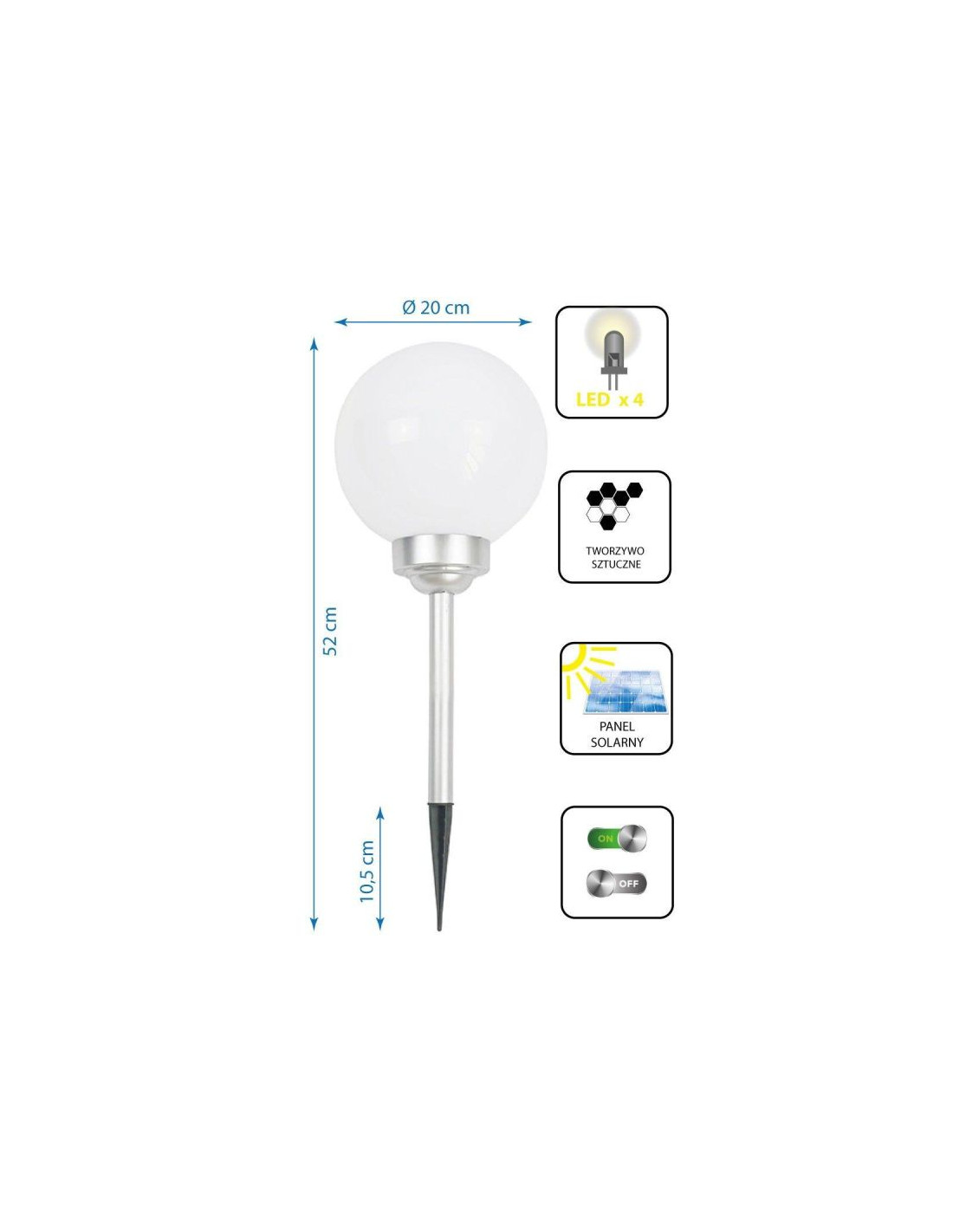 Lampa solarna kula mleczna 20x53,5cm