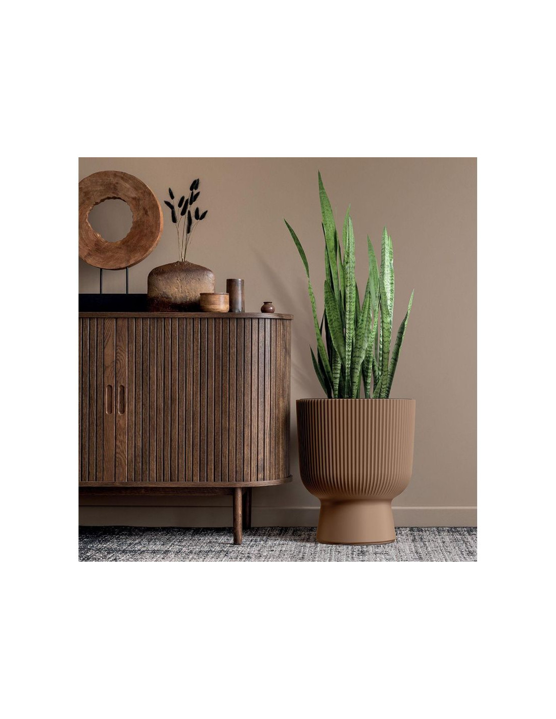Doniczka z serii Milly z gustownym wzorem złożonym z pionowych pasów przyciąga uwagę i nadaje jej wyjątkowego charakteru. Jej klasyczna forma oraz stonowane kolory sprawiają, że idealnie wpasuje się w wiele współczesnych aranżacji, wprowadzając designerski akcent do wnętrz lub otwartych przestrzeni ogrodu lub tarasu.