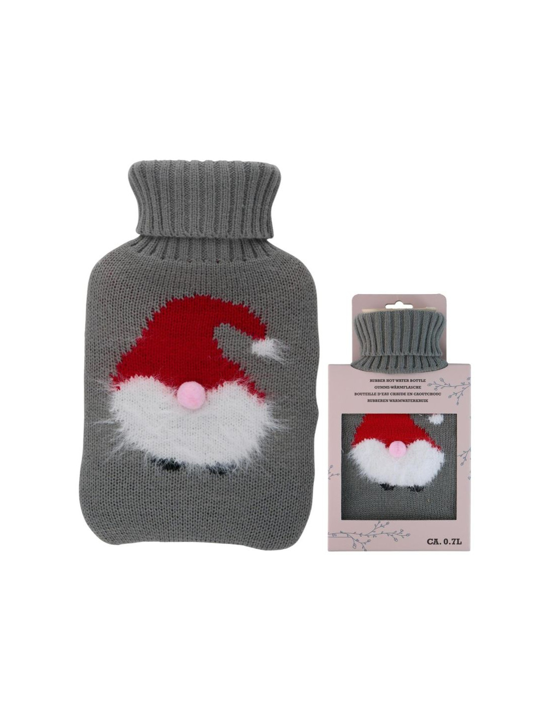 TERMOFOR GUMOWY W POKROWCU ALPINA 0,7L MIKOŁAJ łączy ciepło, wygodę i świąteczny urok w jednym. Dzięki pojemności 0,7 L jest lekki, bezpieczny i wygodny w codziennym użytkowaniu. Pokrowiec z Mikołajem wprowadza świąteczny klimat, a miękka tkanina sprawia, że każda chwila z nim to czysty relaks.