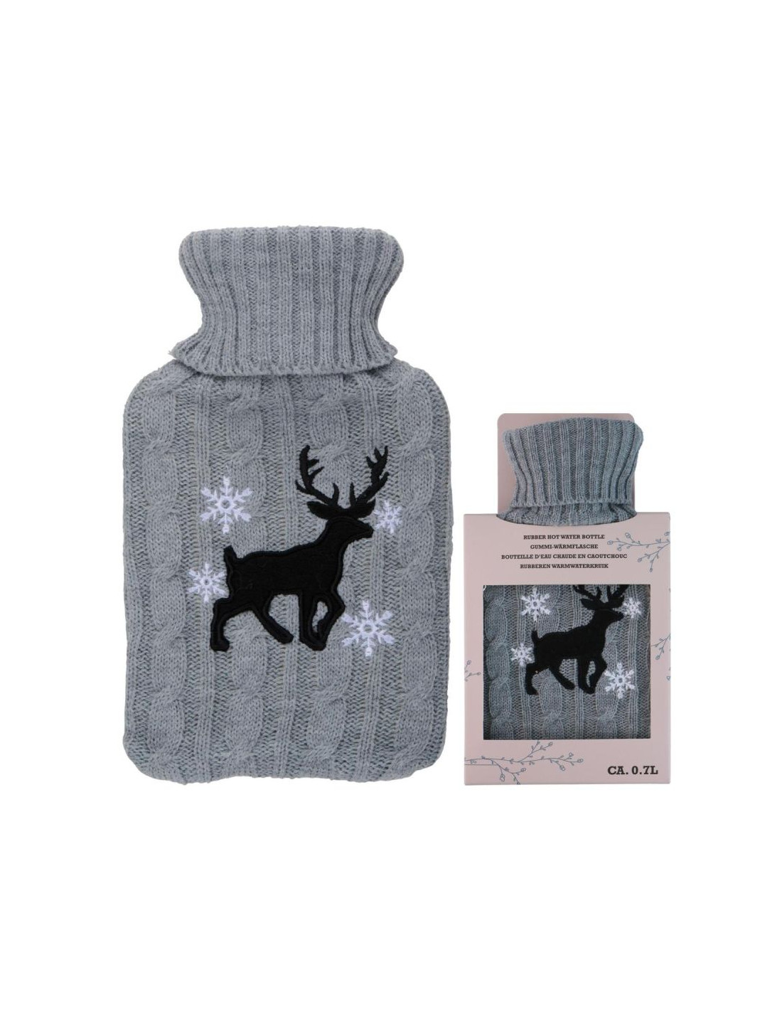 TERMOFOR GUMOWY W POKROWCU ALPINA 0,7L RENIFER łączy ciepło, wygodę i świąteczny urok w jednym akcesorium. Pokrowiec z reniferem wprowadza klimat Bożego Narodzenia i dba o bezpieczeństwo użytkowania. Idealny do rozgrzania dłoni, brzucha czy stóp oraz jako piękny, praktyczny prezent.