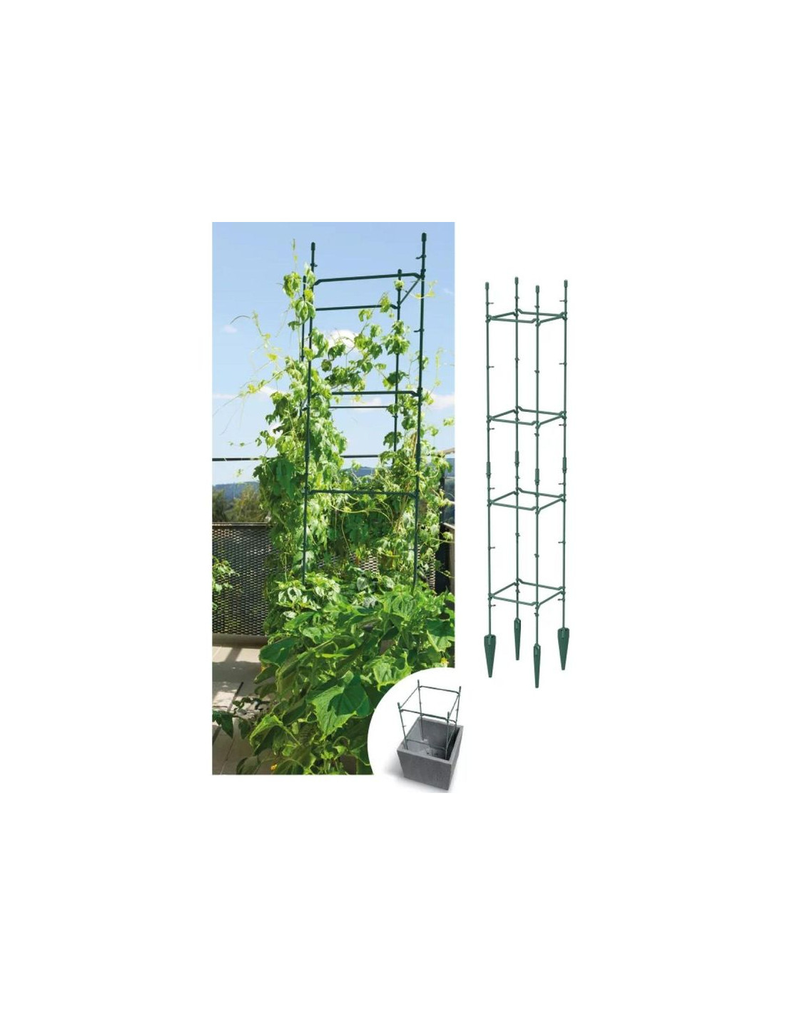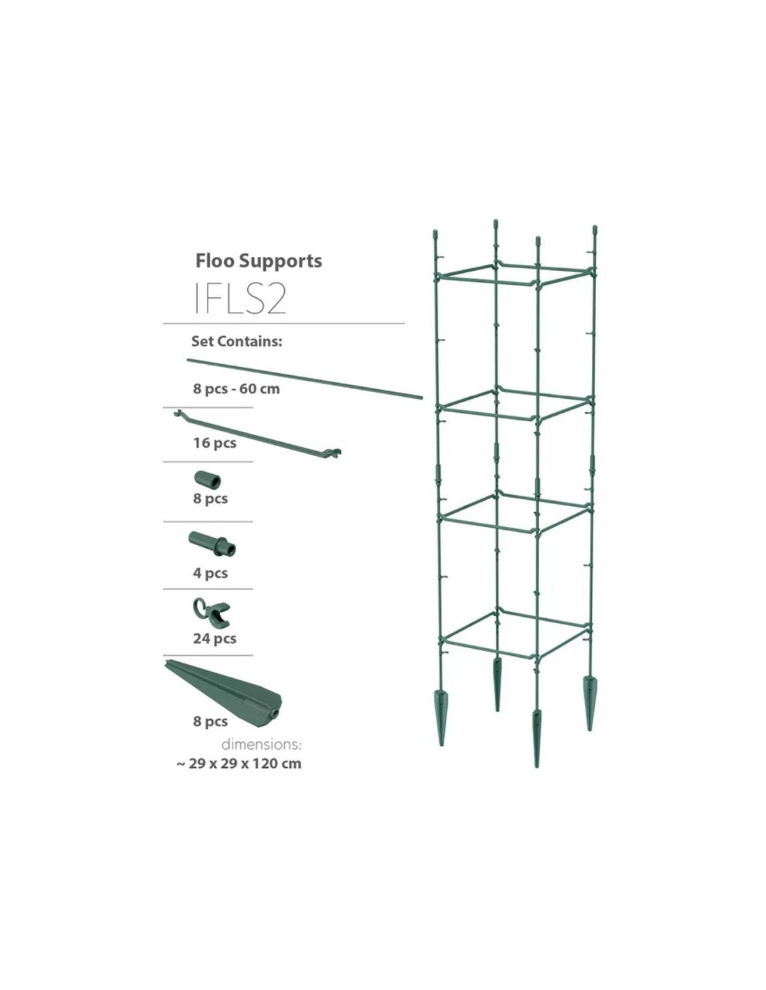 PODPORA DO ROŚLIN FLOO SUPPORTS 29x29x120 CM ZIELONY LEŚNY to wszechstronny zestaw umożliwiający stworzenie kilku wariantów konstrukcji dla roślin pnących. Estetyczny design, trwały materiał i łatwy montaż sprawiają, że to idealne rozwiązanie do każdego ogrodu!