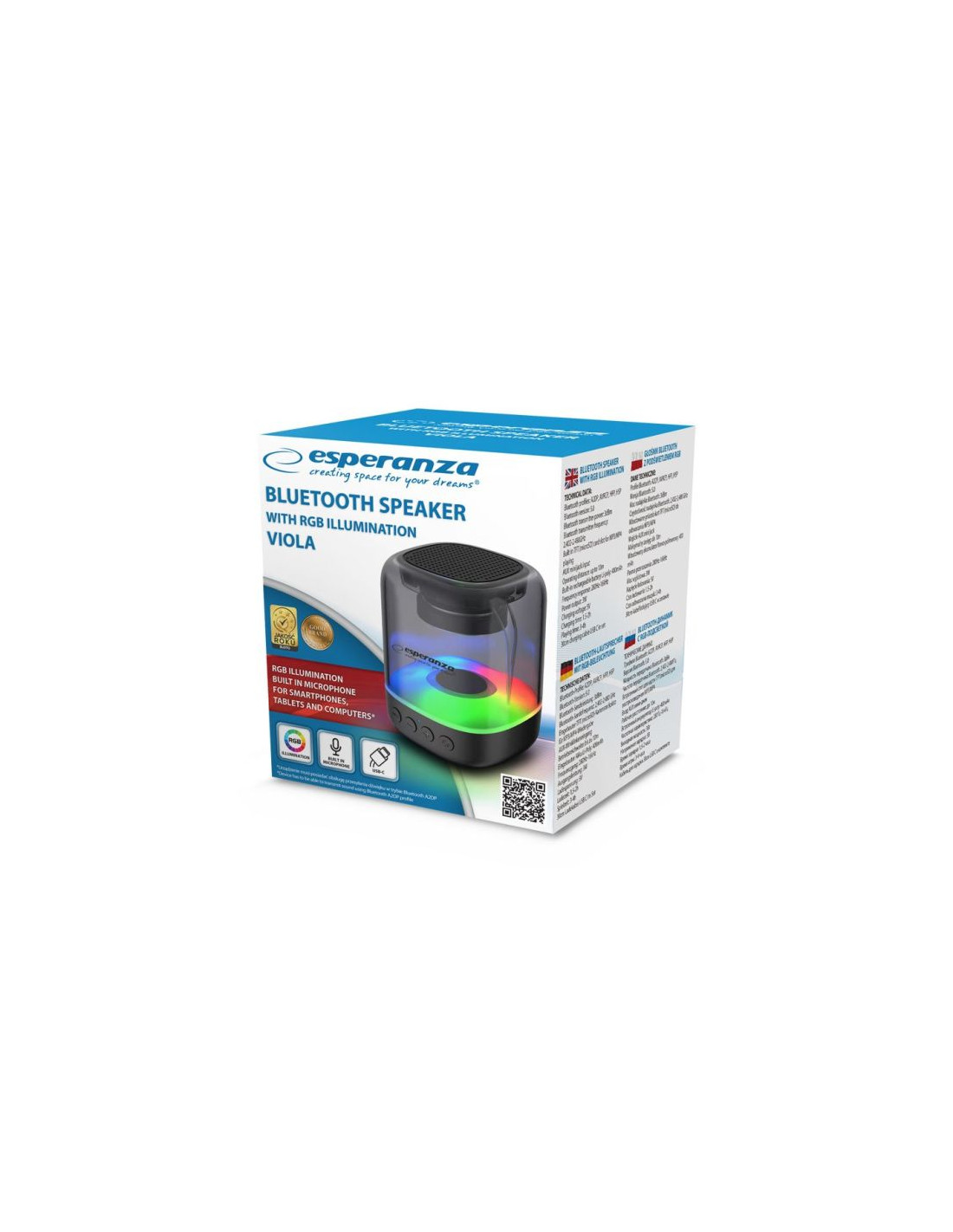 Esperanza głośnik bluetooth rgb viola ep154