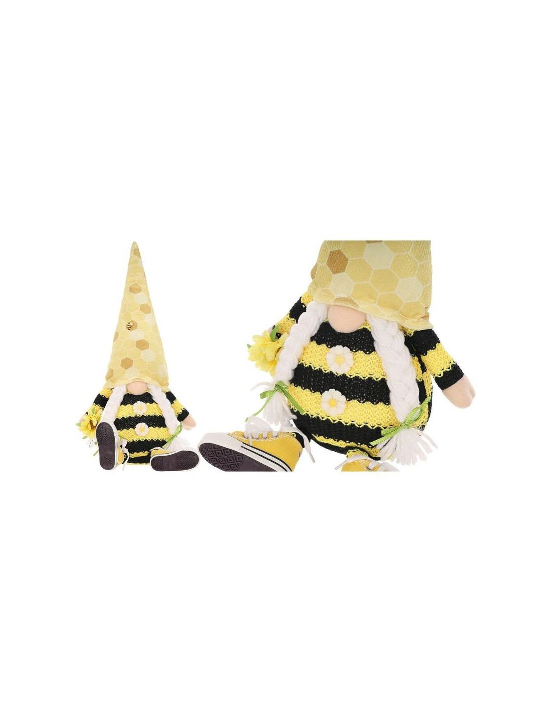 Skrzat gnom siedzący pszczółka 35+6cm w trampkach dekoracja wiosenna