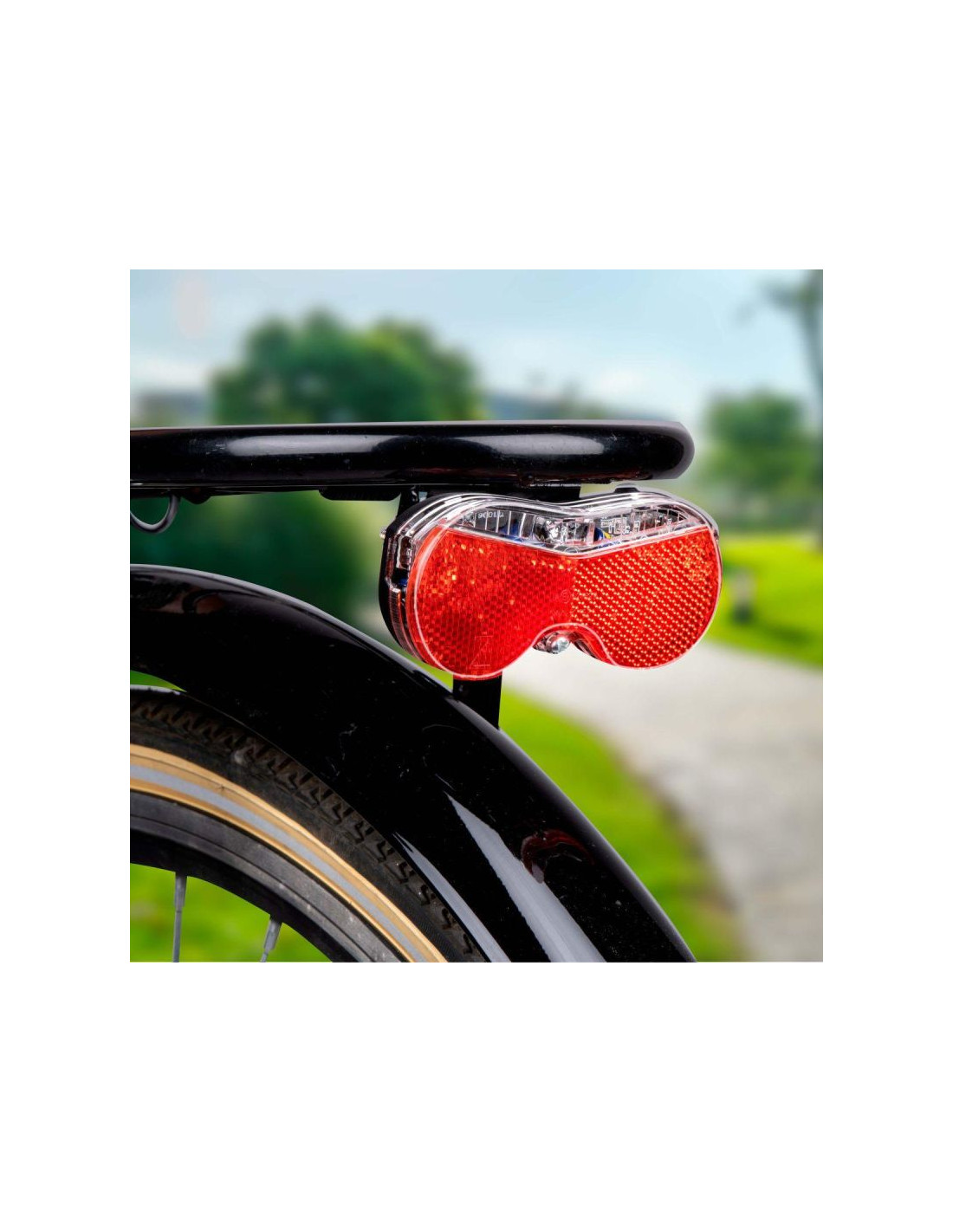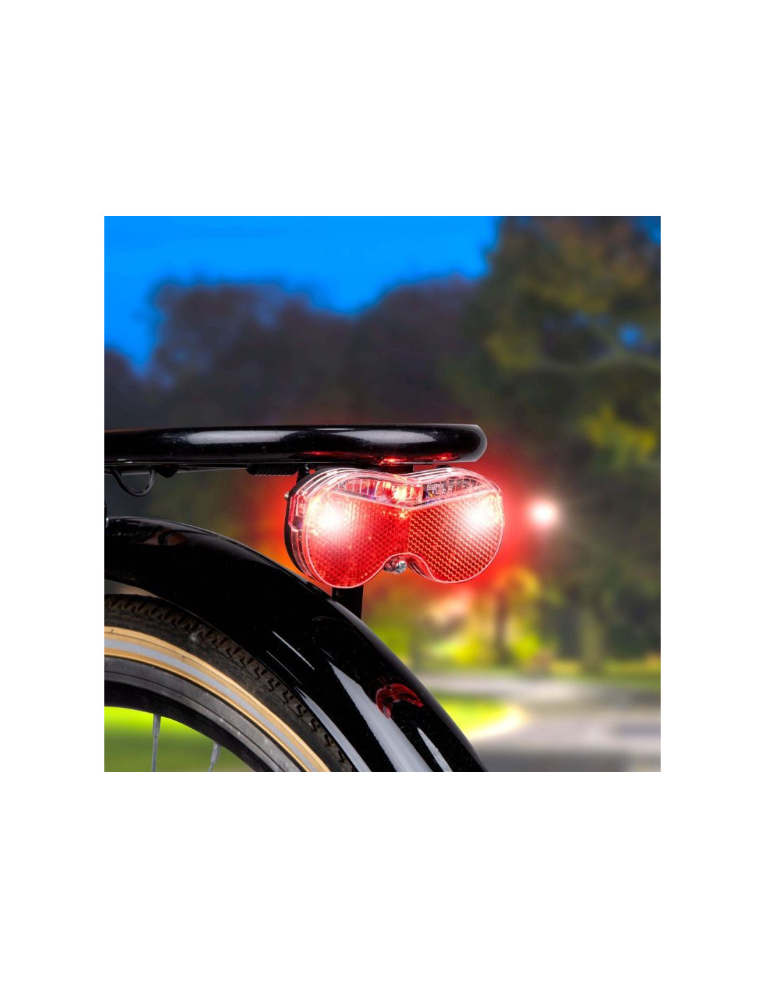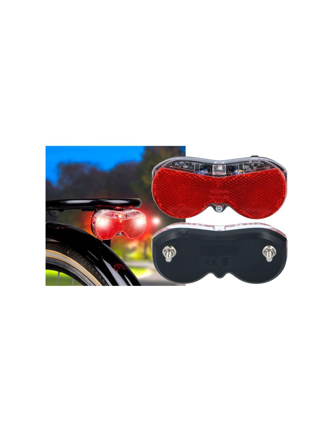 - W zestawie: Lampa tylna, czerwona z 3 diody LED, śruby do zamocowania, baterie