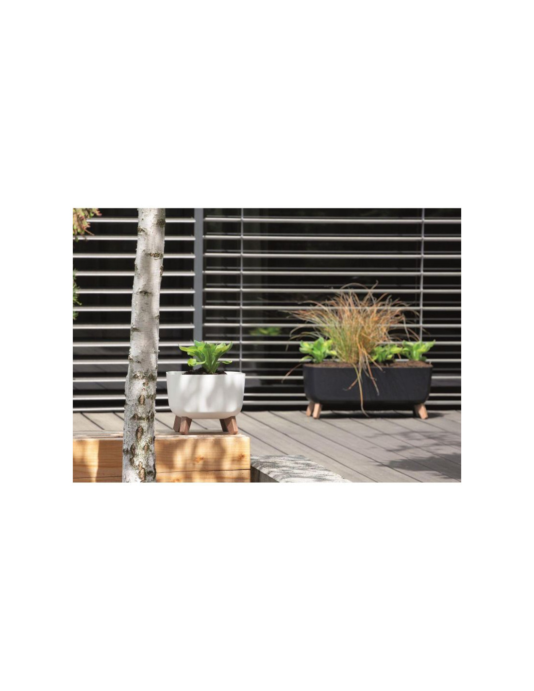 Konstrukcja kwietnika dzięki zdejmowanym nóżkom jest idealna do wyeksponowania zielonych aranżacji podłogowych zarówno w domu jak i na zewnątrz np. na tarasie czy na balkonie.