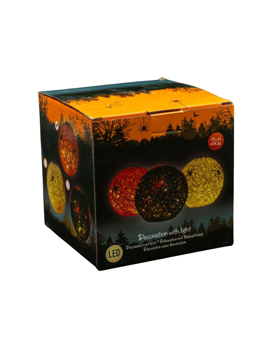 Dzięki wbudowanemu oświetleniu LED, kula emituje subtelne, nastrojowe światło, które podkreśla pająki znajdującego na lampie. To sprawia, że dekoracja przyciąga uwagę i dodaje uroku mrocznym aranżacjom.