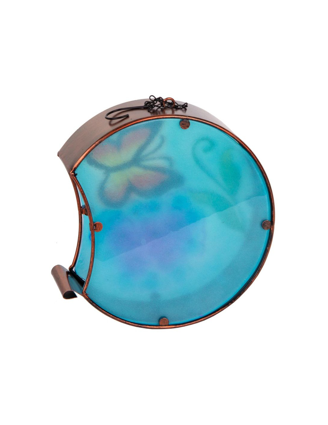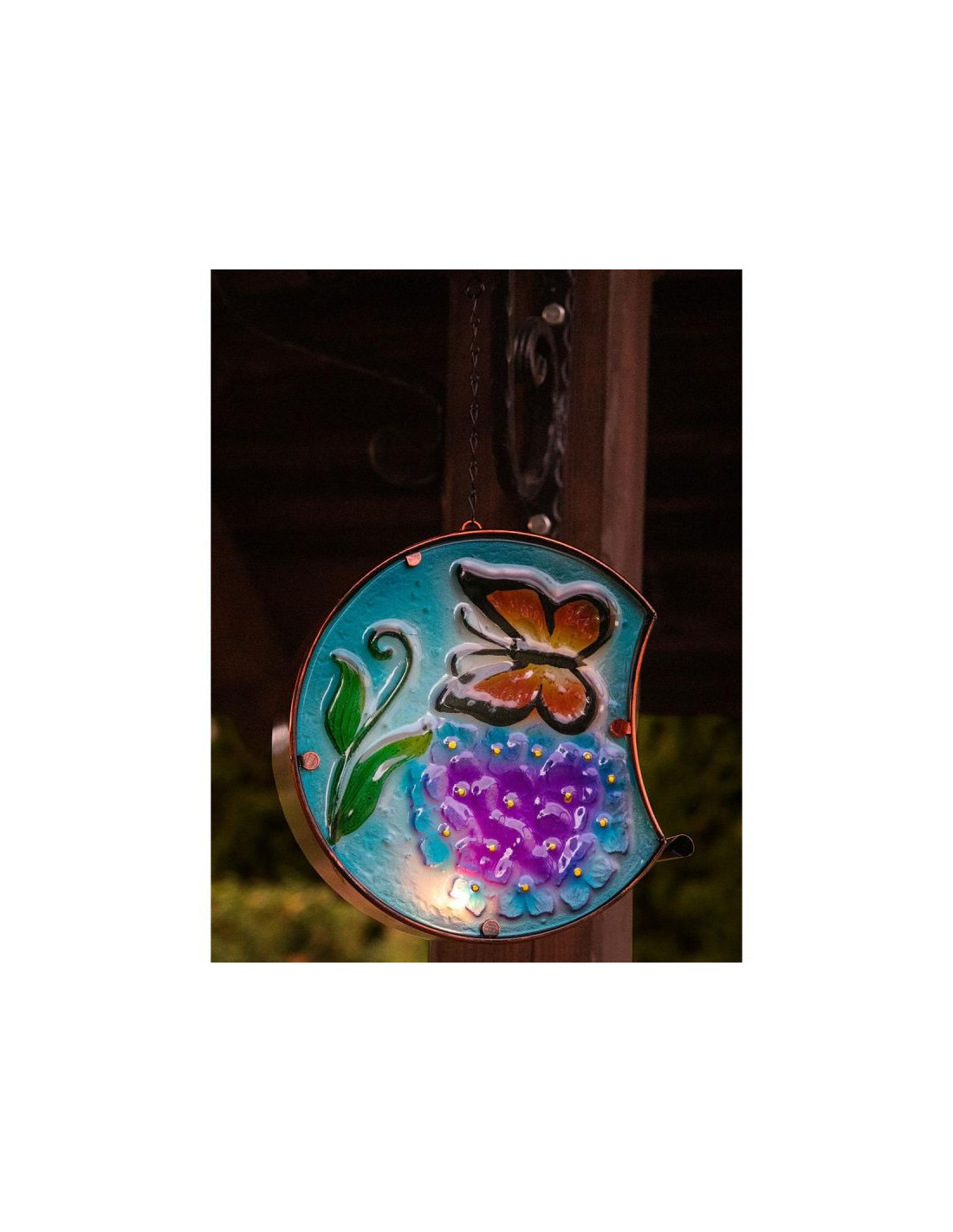 Udekoruj i oświetl swój dom lub ogród kolorowym witrażem ze świecą wewnątrz. Ozdobny lampion wiszący ze szkła i metalu, wygląda znakomicie w ogrodzie, w domu, na tarasie i balkonie.