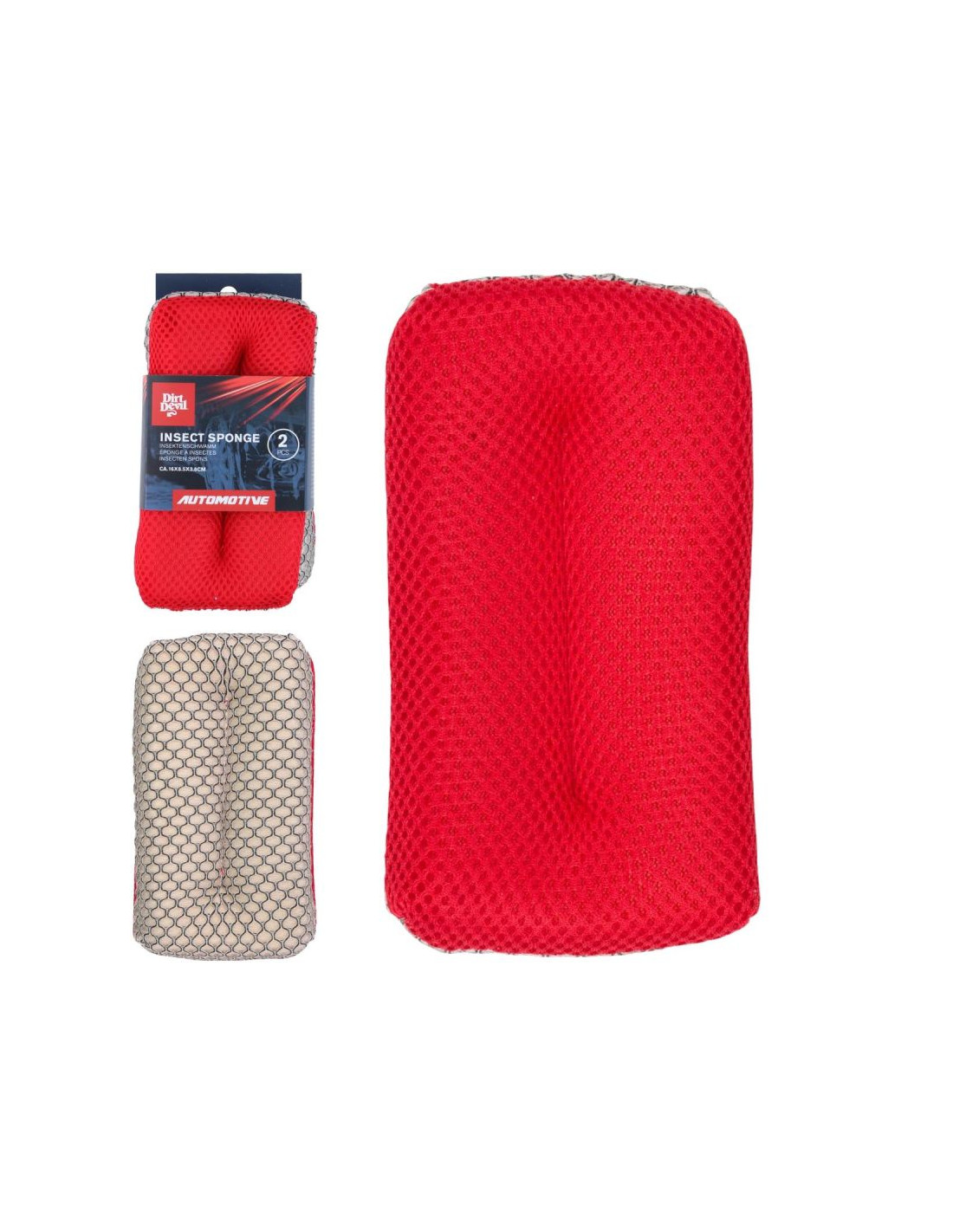 Specjalna warstwa z siateczki usuwa zaschnięte owady, kurz i błoto bez potrzeby używania silnych detergentów. Gąbki idealnie sprawdzą się podczas letnich podróży, gdy przód auta jest narażony na intensywne zabrudzenia.