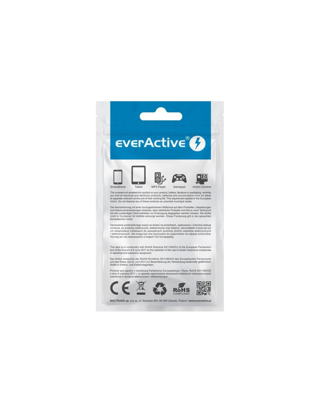 Kabel zasilający everactive cbs-1iw (usb - lightning 1m kolor biały)