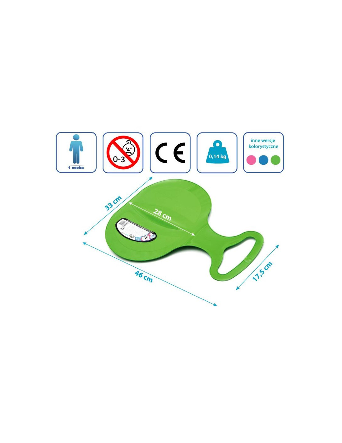 • plastikowa rączka w przedniej części ślizgu gwarantuje bezpieczny zjazd w preferowanej siedzącej lub leżącej pozycji