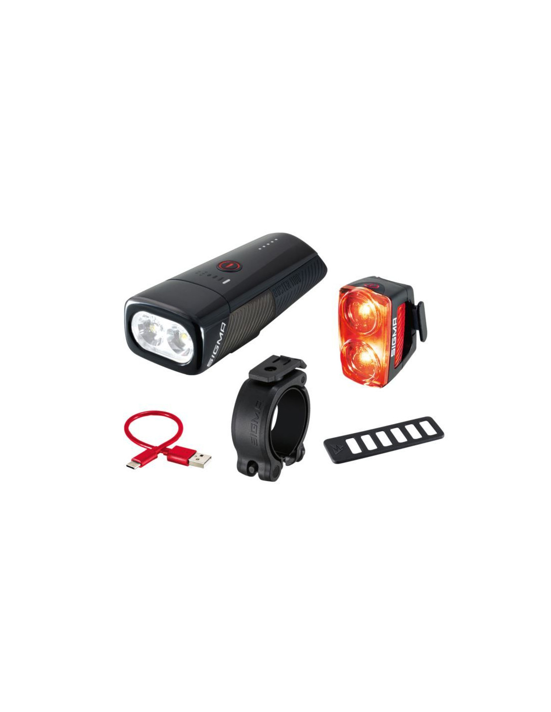 Dzięki zestawowi oświetlenia rowerowego składającego się z przedniej lampki BUSTER 1100 i tylnej lampki BUSTER RL 150 rowerzyści mają w ciemności wszystko w zasięgu wzroku. 1100 lumenów i zasięg światła 165 metrów zapewniają optymalne oświetlenie i bezpieczeństwo podczas wycieczki rowerowej, nawet na najciemniejszych drogach i szlakach. Podwójna soczewka z dwoma różnymi układami optycznymi i dwiema diodami LED zapewnia dużą jasność i wspaniały obraz świetlny. Sześć różnych trybów światła zapewnia elastyczność jasności i pozwala na żywotność baterii do 50 godzin. Wskaźniki LED na górze wyraźnie pokazują, który tryb jest aktualnie wybrany i ile pozostało jeszcze czasu pracy baterii. Pięć wstępnie ustawionych profili trybów zapewnia dodatkową łatwość użytkowania. BUSTER RL 150 to najjaśniejsza tylna lampka firmy SIGMA, która zapewnia maksymalną widoczność. Dzięki 150 lumenom i zasięgowi widoczności 2000 metrów, rowerzyści są widoczni z daleka na drodze lub w lesie. Praktyczna funkcja światła hamowania sygnalizuje każdy proces hamowania i zapewnia dodatkowe bezpieczeństwo w ruchu drogowym. Dostępnych jest pięć trybów świecenia, w tym tryby migające, które zapewniają do 20 godzin świecenia.