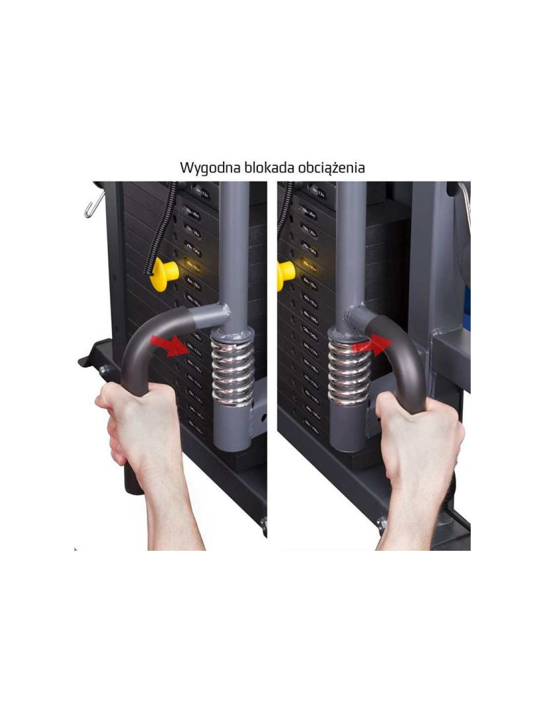 - rodzaj obciążenia: dwa stosy obciążeniowe po 90kg regulowane co 6kg