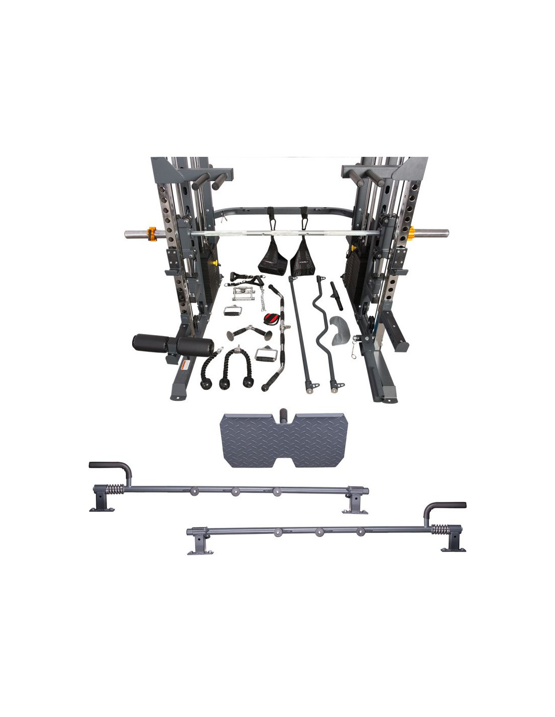 - przyrząd do kompleksowego ćwiczenia górnych i dolnych grup mięśniowych: Barki, Klatka piersiowa, Grzbiet, Biceps, Triceps, Brzuch, Prostownik grzbietu, Pośladek, Czworogłowy uda, Dwugłowy uda