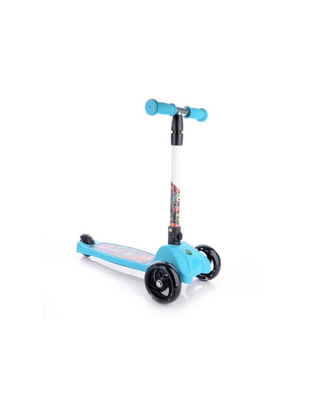- Świecące koła LED: Zarówno przednie, jak i tylne koła wyposażone są w kolorowe światła LED, które zwiększają widoczność i dodają hulajnodze atrakcyjnego wyglądu.