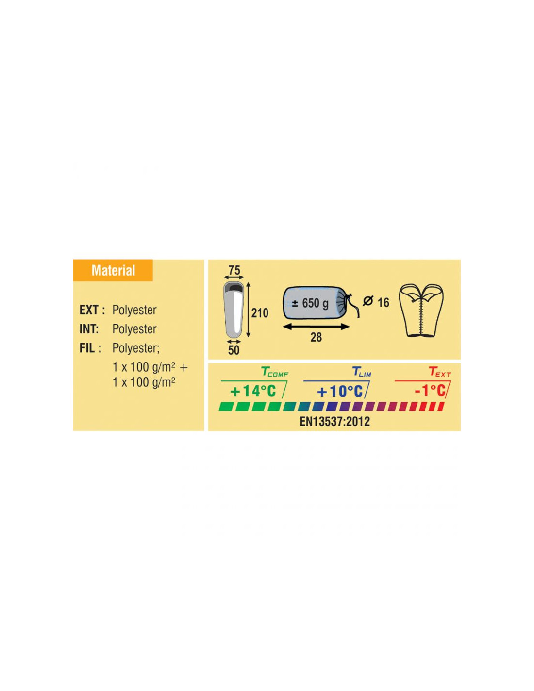 ŚPIWÓR BEST CAMP WILLIWA 210x75x50 zip-R 25037 Śpiwór w sam raz na podróż lub długie i krótkie wycieczki. Posiada ściągany kołnierz, podniesiony kaptur, charakteryzuje się wyjątkowymi parametrami termicznymi. Temperatura Ekstremalna -1stC. CECHY:- Najwyższa jakość materiałów- Stylowy wygląd- Testowany temperaturowo DIN EN 13537- Rewelacyjne zakresy temperatur- Możliwość łączenia śpiworów MATERIAŁY:- Wypełnienie: dół 1x 100 gr/m²; góra: 1x 100 gr/m² - Materiał zewnętrzny: 100% Poliester- Podszewka: 100% poliester WYMIARY:- Rozmiar opakowania: 28 x 16 cm- Długość 210cm- Szerokość 50cm- Waga 650g Do wyboru jest śpiwór z zapięciem z lewej bądź z prawej strony.