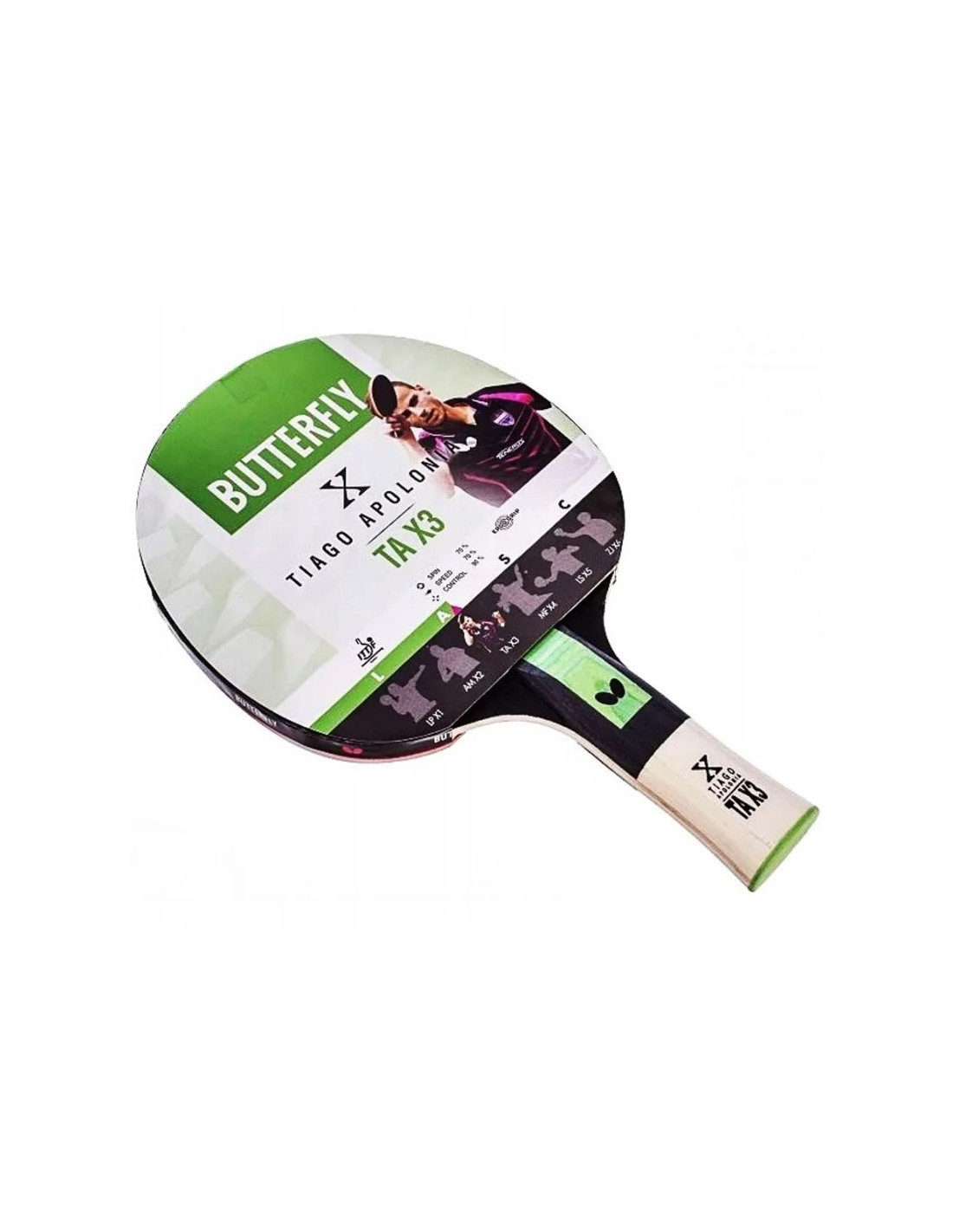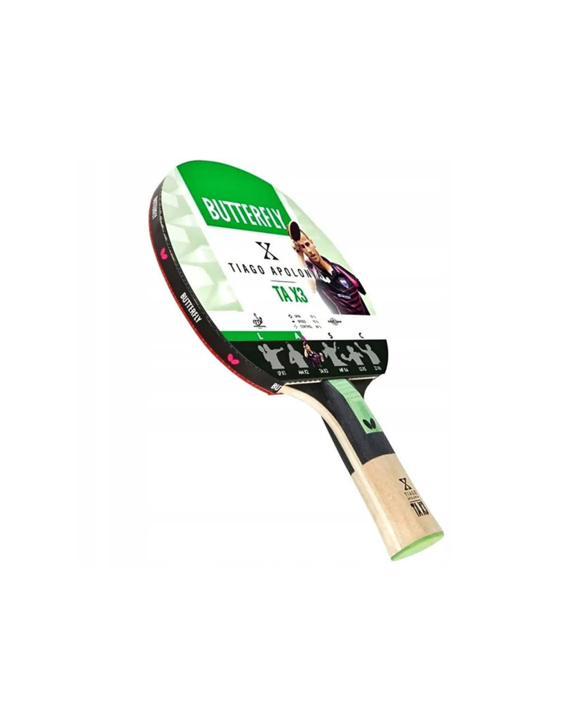 Rakietka Butterfly Tiago Apolonia TAX3 to wysokiej jakości model przeznaczony dla graczy poszukujących optymalnego balansu między kontrolą, rotacją i szybkością.