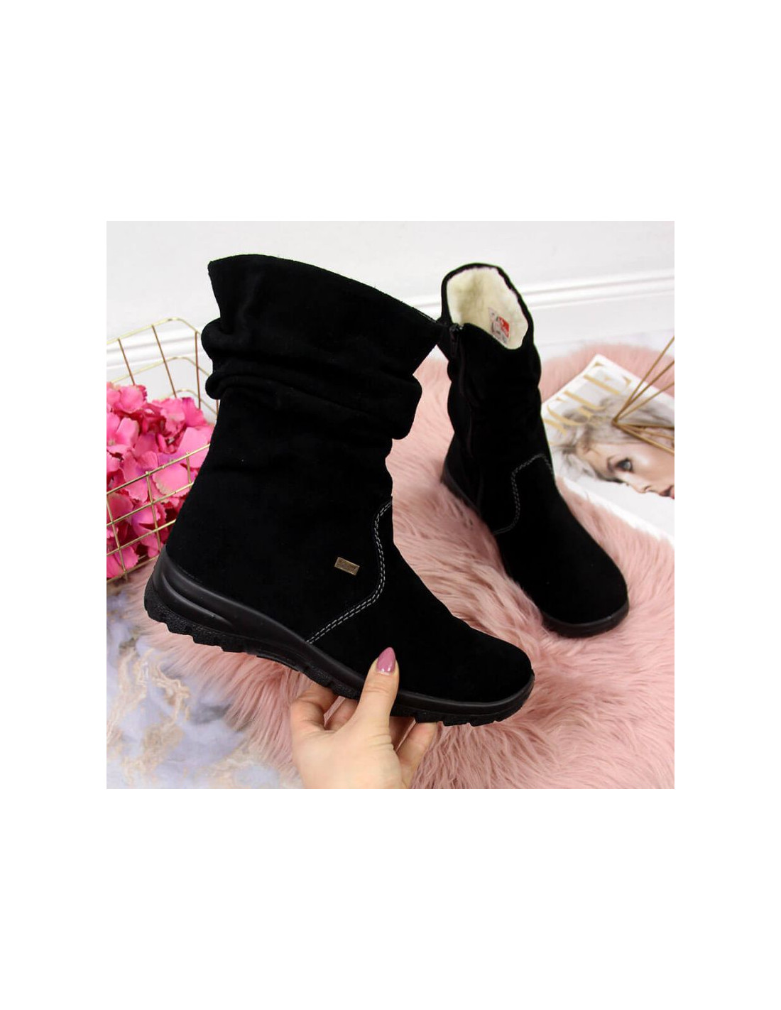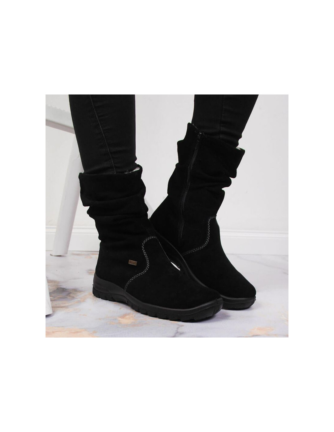 Skórzane botki ocieplane RIEKER W RKR130