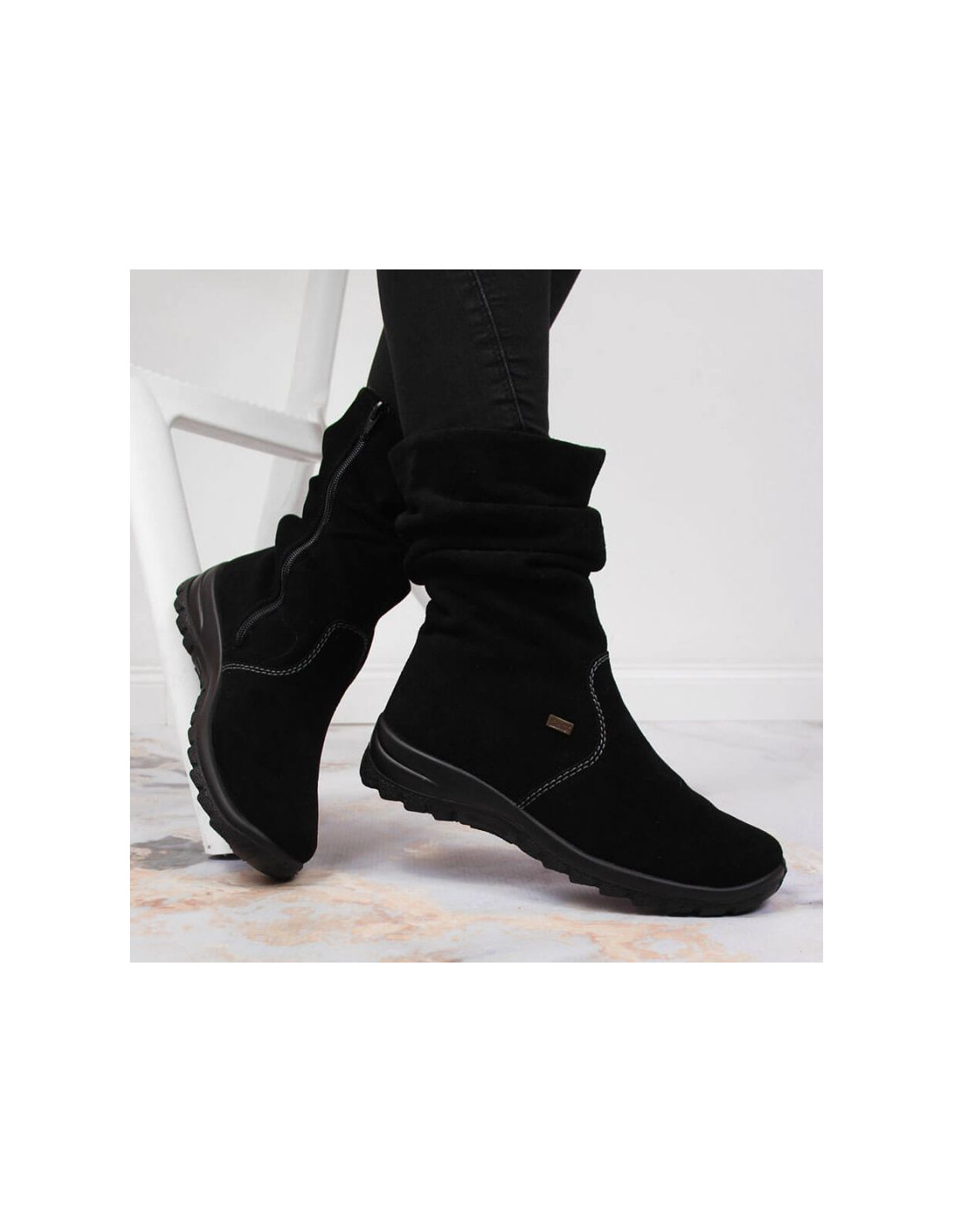 - Niezwykle komfortowe botki renomowanego niemieckiego producenta RIEKER - posiadają membranę riekerTEX, która zapewnia wzmożoną odporność na przemakanie, ochronę przed zimnem i wilgocią oraz swobodne oddychanie.