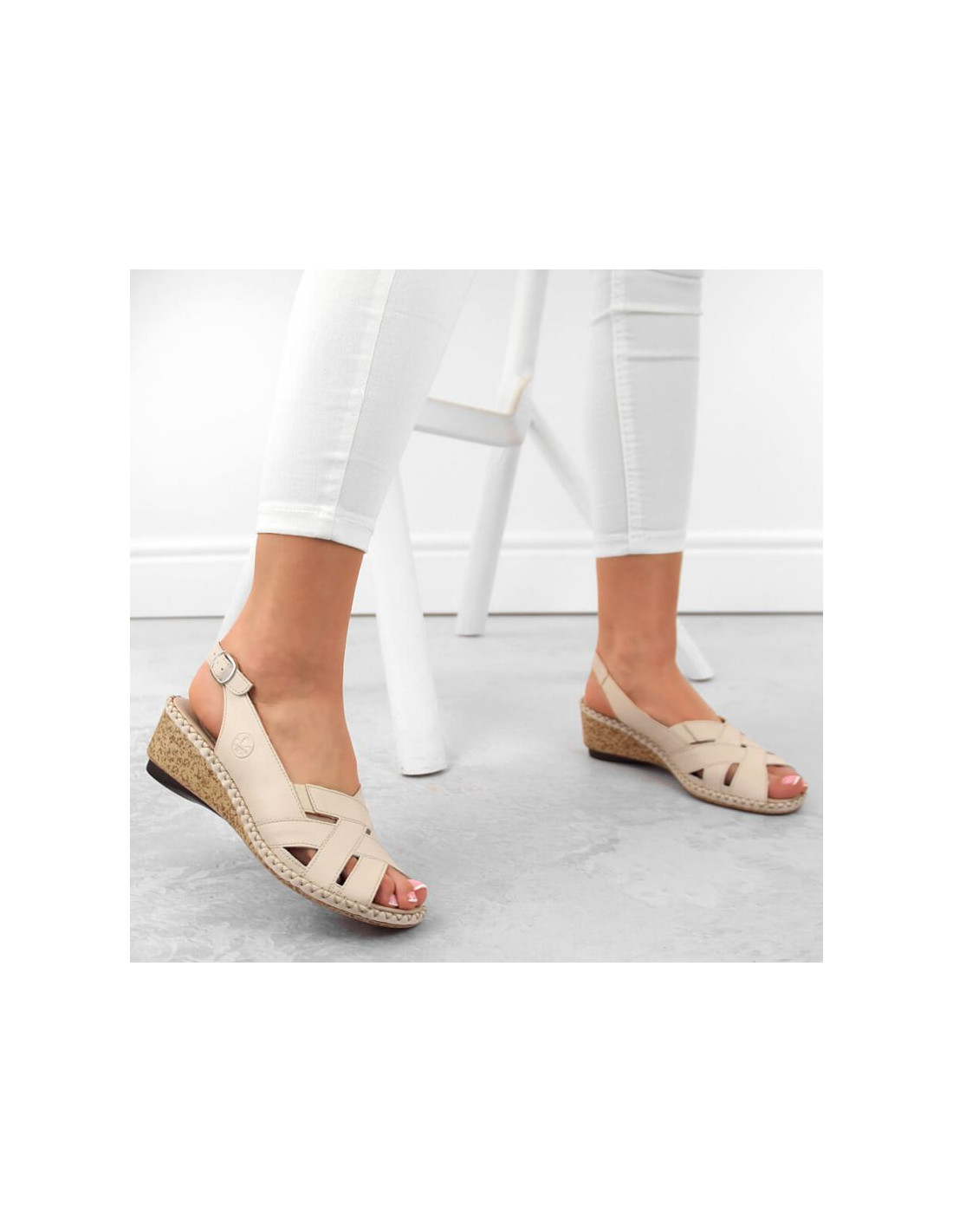 Skórzane komfortowe sandały Rieker W RKR682 beżowe