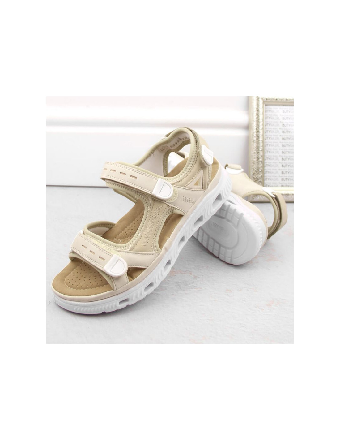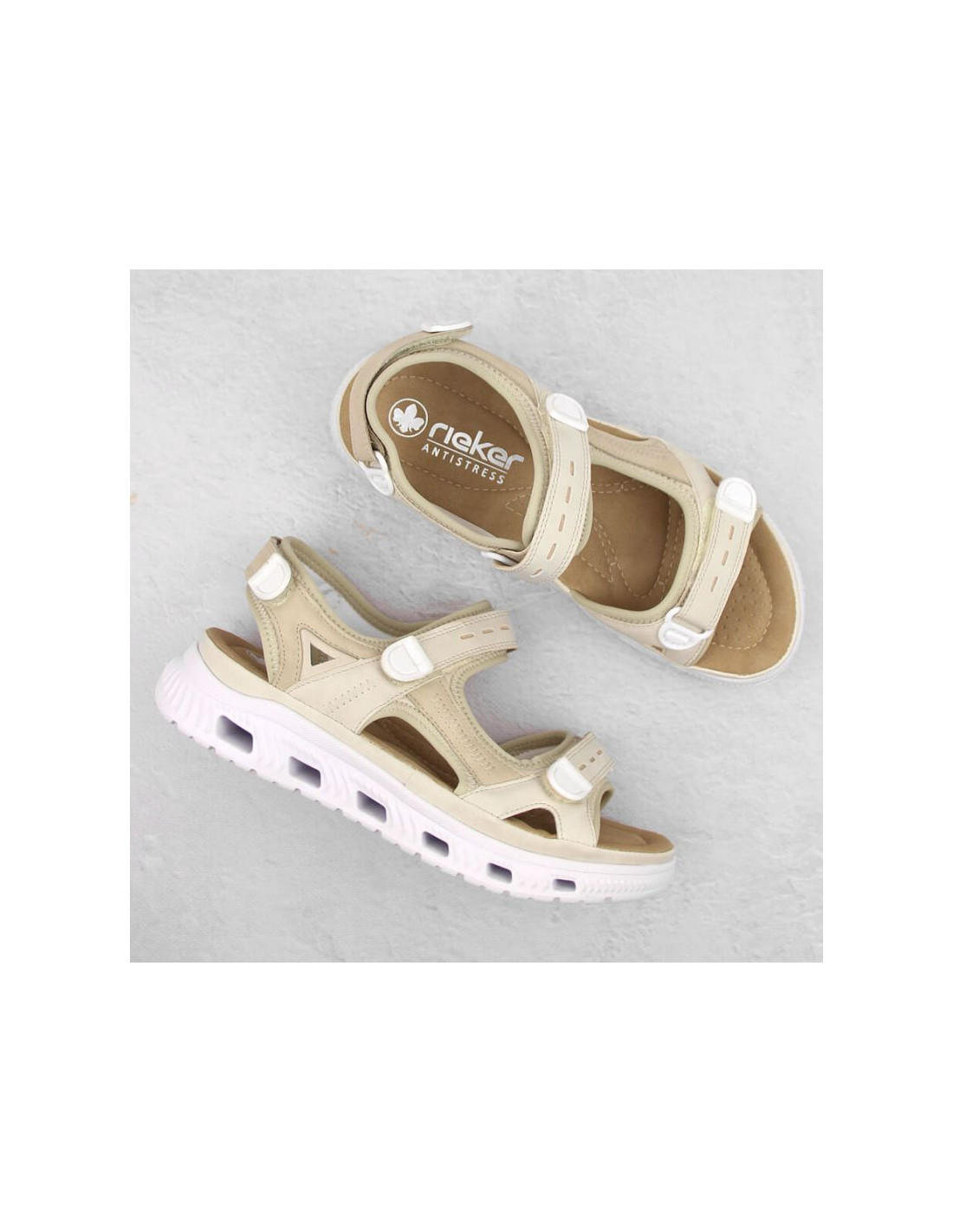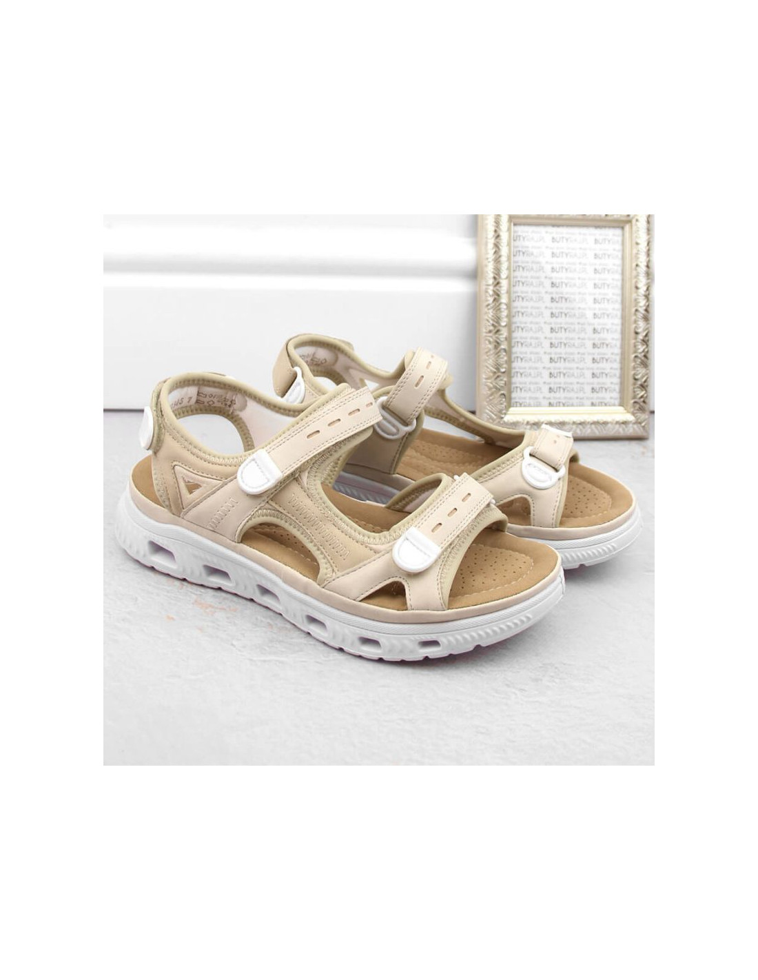 Komfortowe sandały na rzepy Rieker W RKR691 beżowe