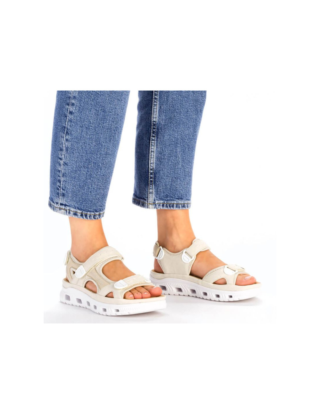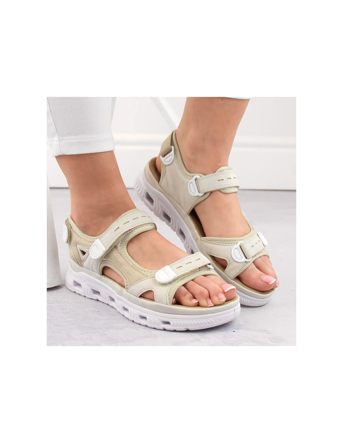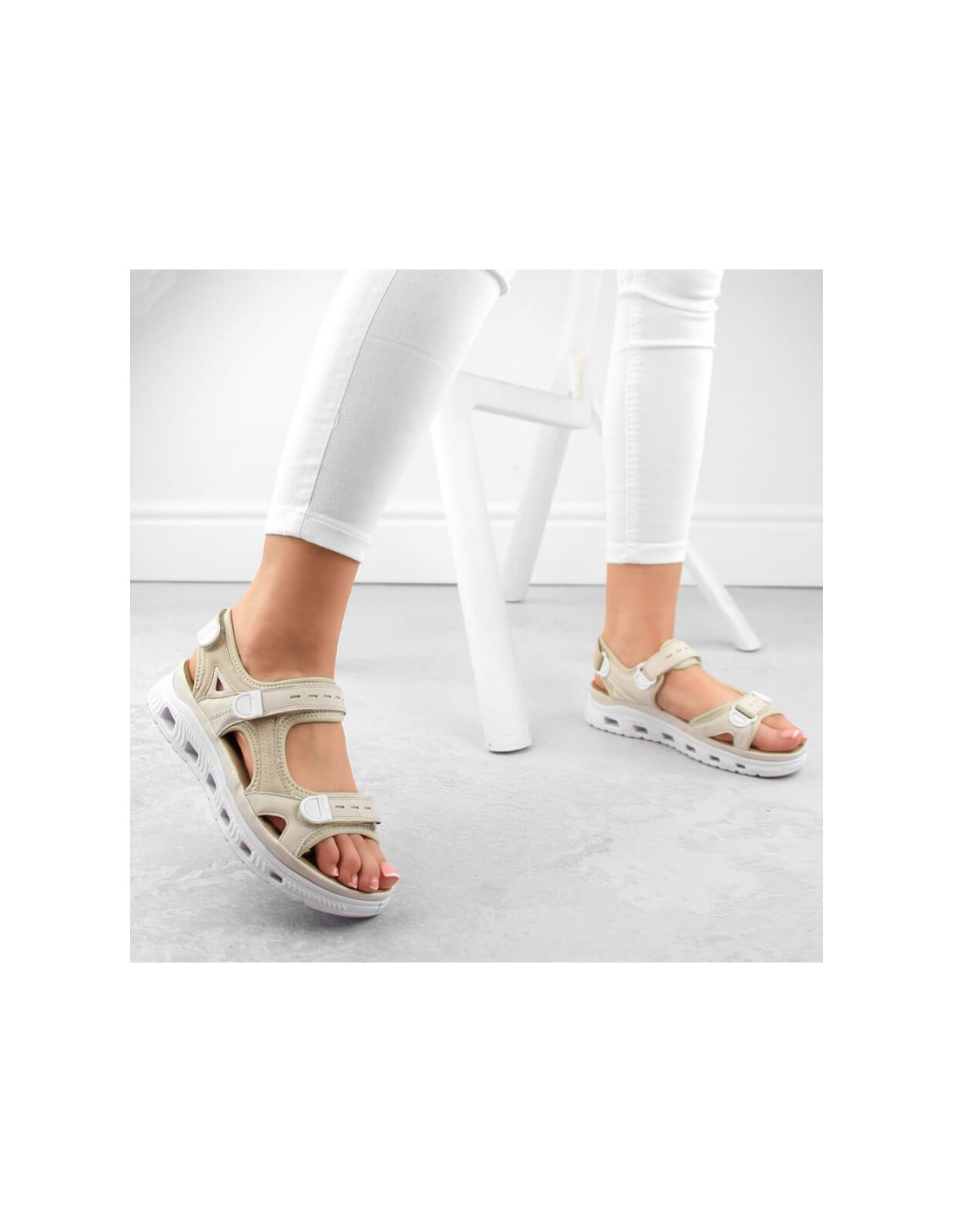 Komfortowe sandały na rzepy Rieker W RKR691 beżowe