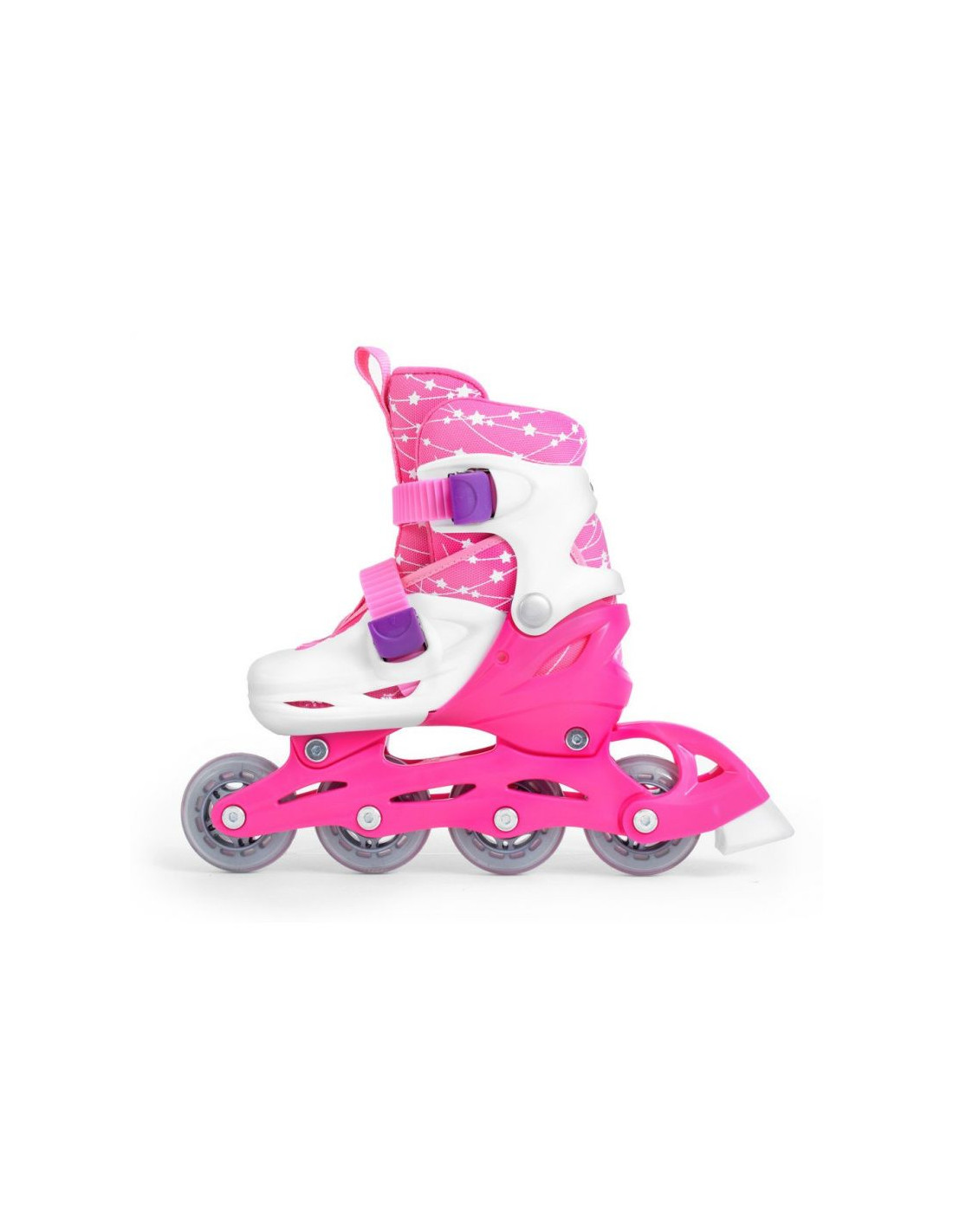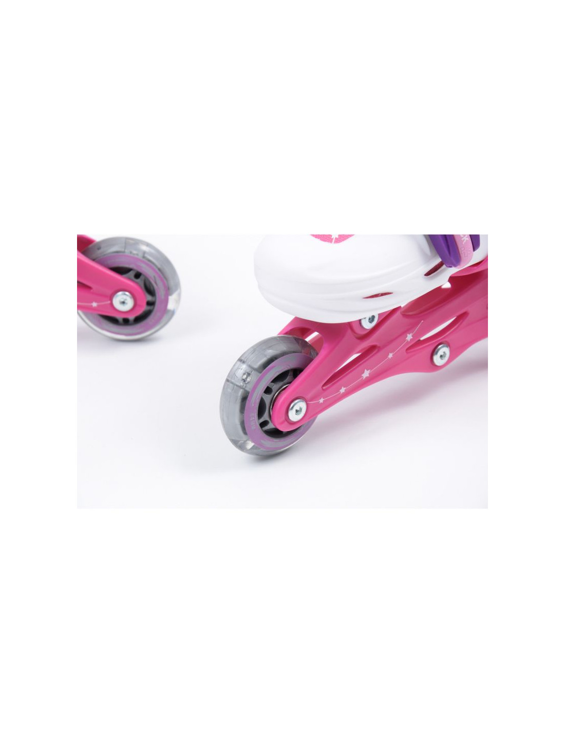 Wrotko-rolki produkcji SMJ sport, posiadają kółka wykonane z kauczuku, dzięki czemu jazda jest dużo stabilniejsza, wygodniejsza i bezpieczniejsza niż na kółkach plastikowych. Ponadto wrotko-rolki wyposażone są w bardzo dobre, wytrzymałe łożyska ABEC-5 Carbon. But oraz płoza w całości wykonane z wysokiej jakości tworzywa ABS. System regulacji buta umożliwia szybką zmianę w granicach czterech rozmiarów - jest to bardzo praktyczne wyjście, ponieważ wrotko-rolki rosną razem ze stopą dziecka. Regulacja rozmiarów jest zabezpieczona blokadą. Zamiana wrotek w rolki polega na przestawieniu kółek przy pomocy załączonego klucza według zawartej instrukcji.