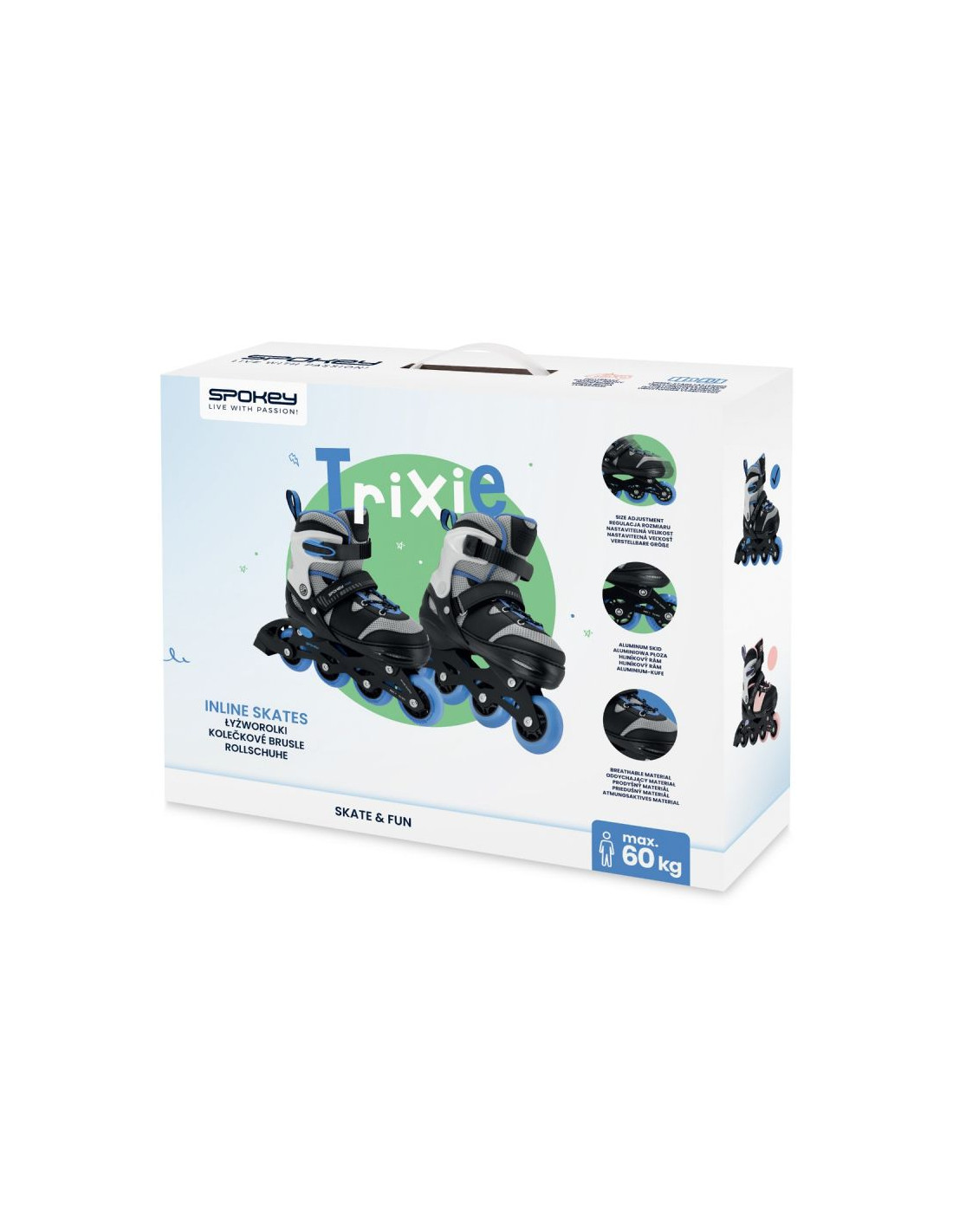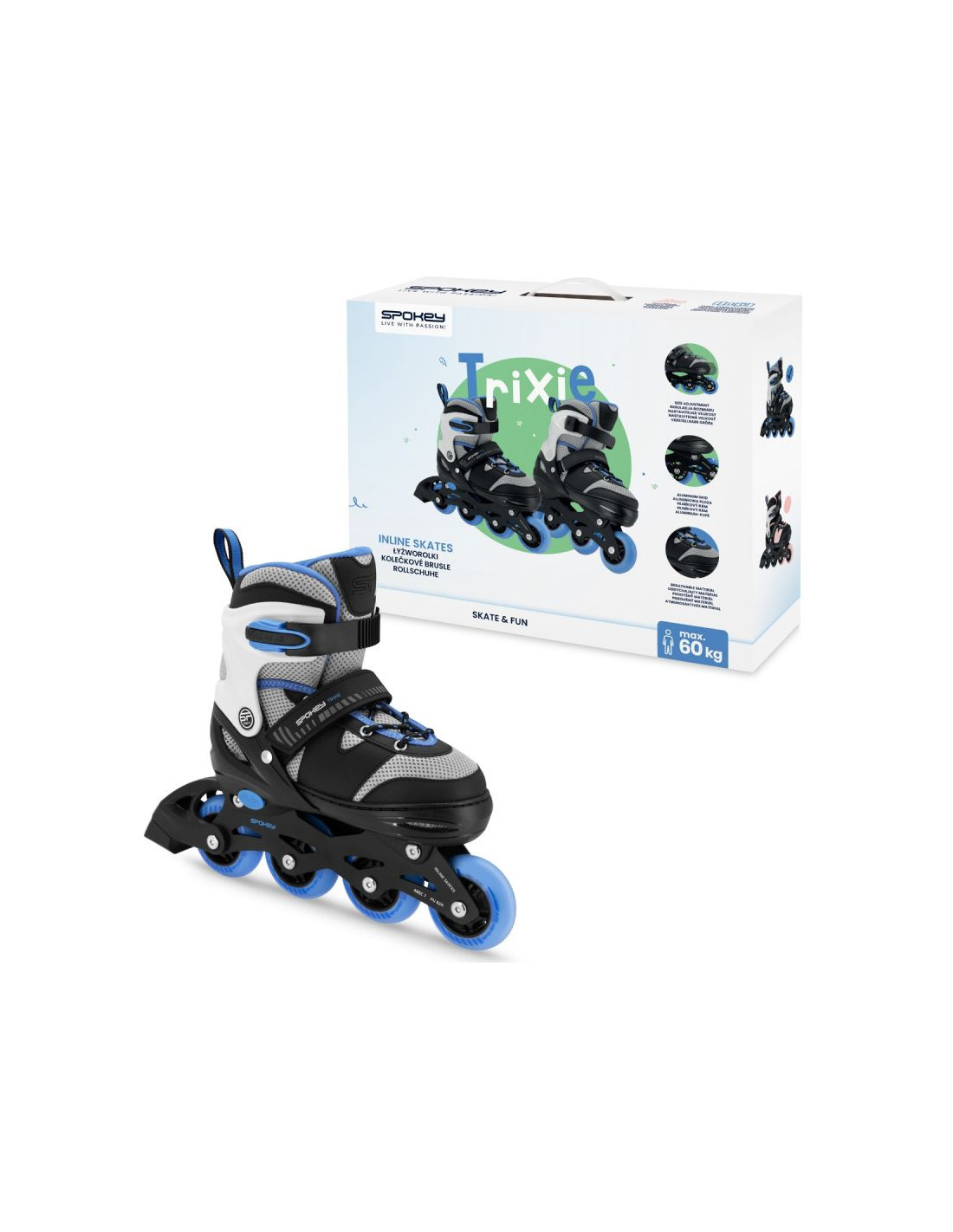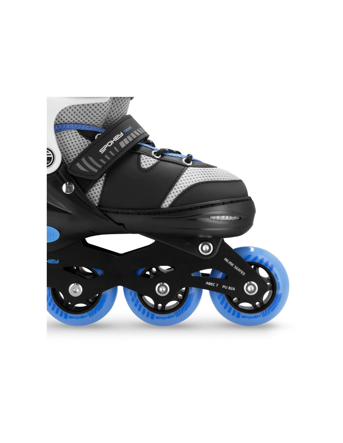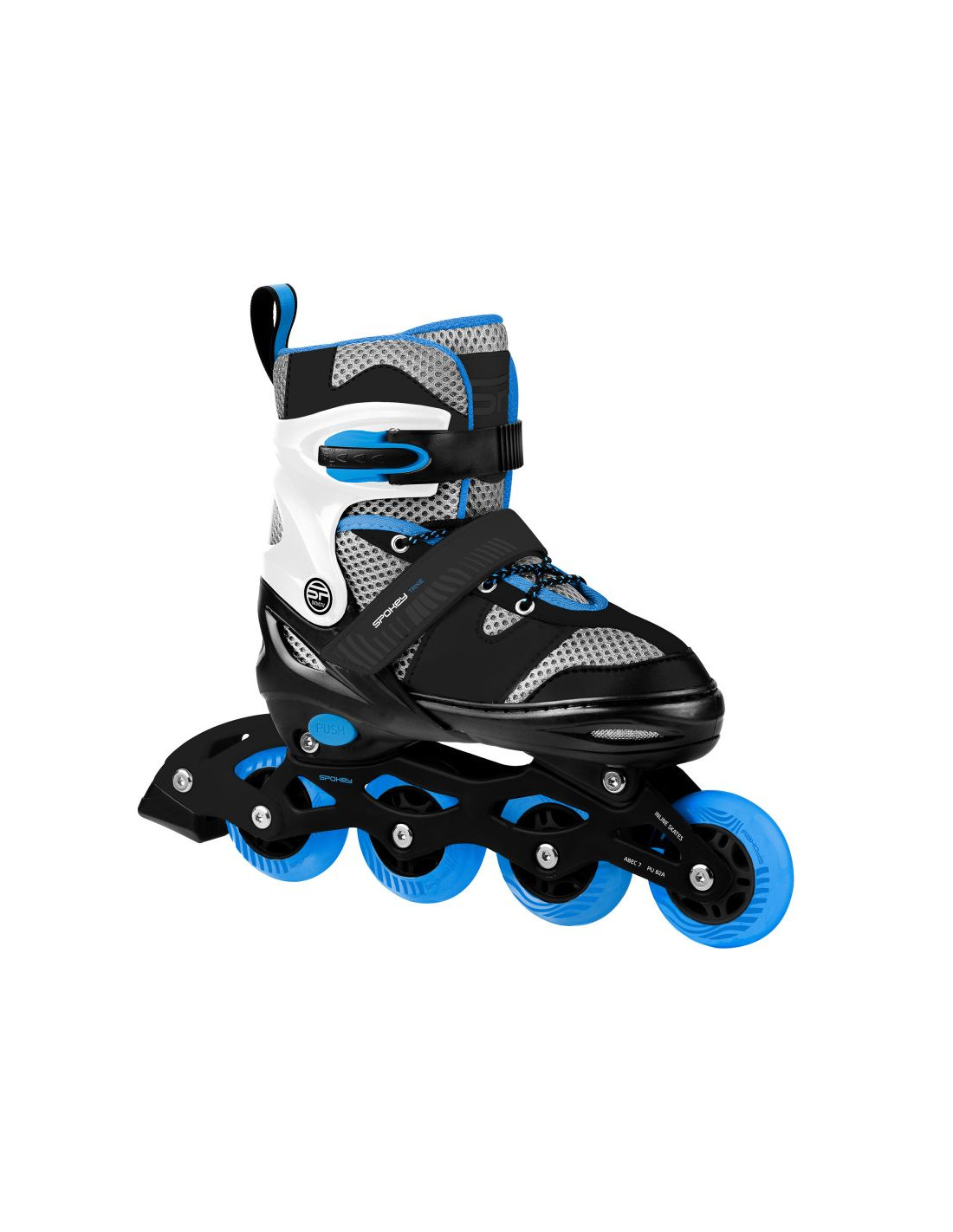 Regulowany rozmiar – rolki dopasowują się do rosnącej stopy dziecka. Wystarczy odpiąć rzep, nacisnąć „PUSH” i wysunąć but na odpowiednią odległość.