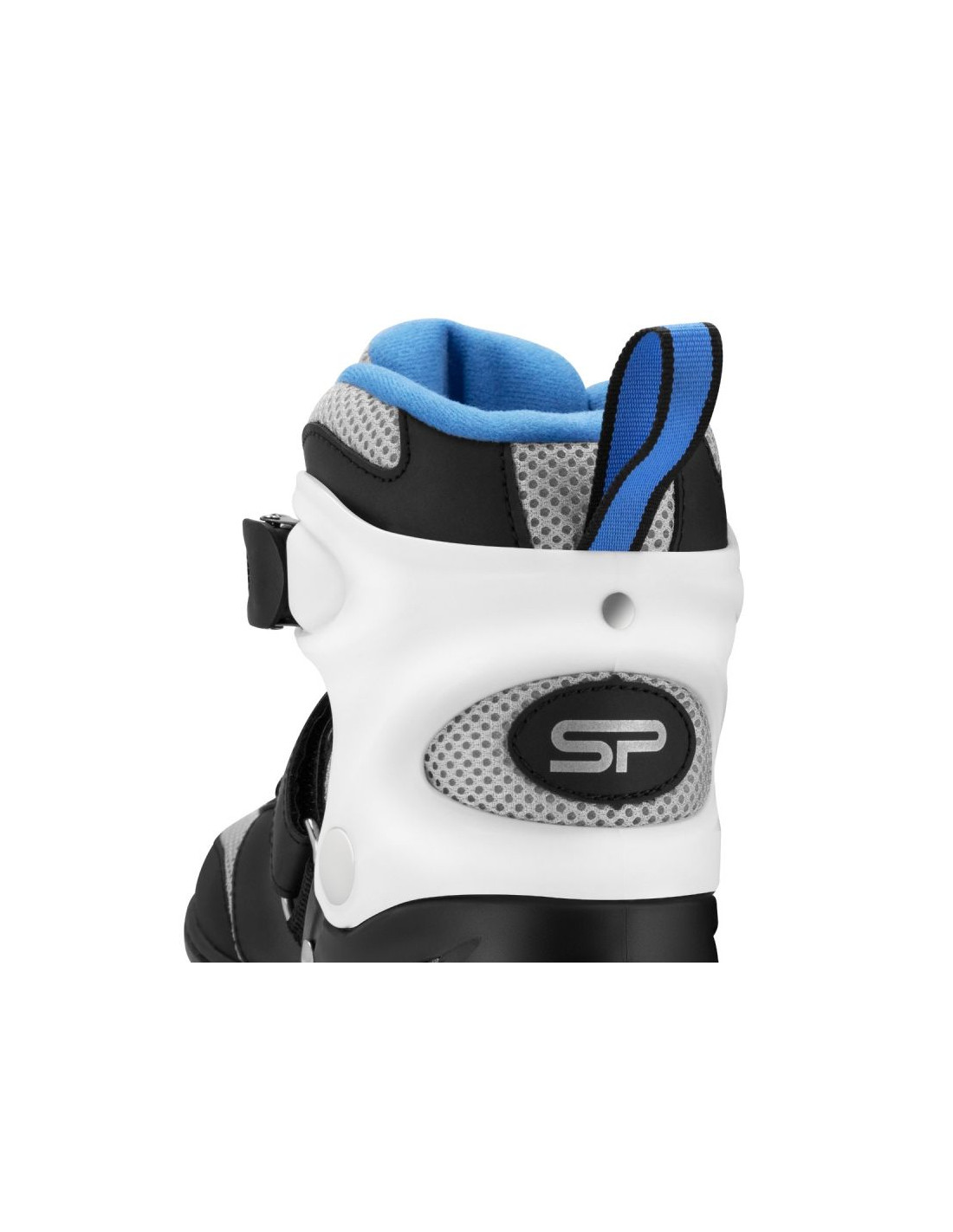 Bezpieczne zapięcie – klamra dwusekcyjna, pasek z rzepem i sznurowanie dla maksymalnej stabilizacji stopy.