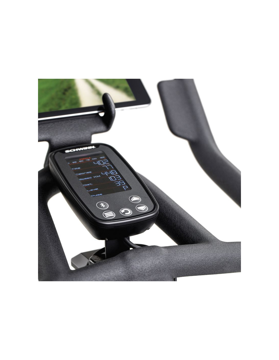 Wyświetlacz: LCD z możliwością śledzenia i kontroli parametrów takich jak czas, prędkość, dystans, kalorie, liczba obrotów na minutę