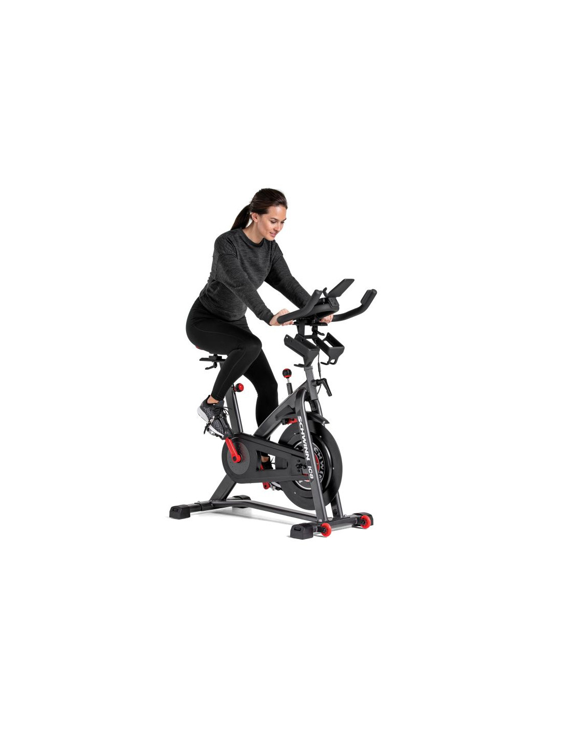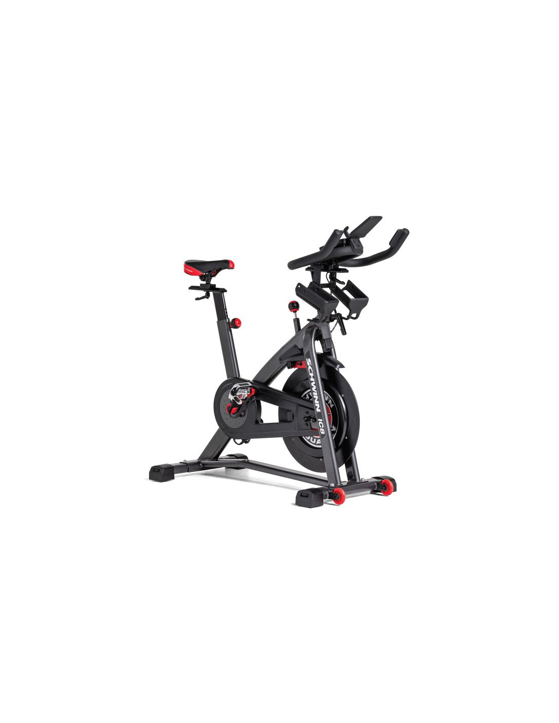 Rower Spinningowy Schwinn IC8 to najnowsza propozycja roweru spinningowego amerykańskiej marki Schwinn, wchodzącej w skład korporacji Nautilus, czyli jednego z liderów rynku fitness w USA. Została ona dopracowana do perfekcji i produkt ten to naprawdę ciekawa oraz konkurencyjna propozycja dla wszystkich użytkowników domowych. Tym co wyróżnia model wśród innych tego typu sprzętów na rynku jest przede wszystkim 18 kilogramowe koło zamachowe z napędem łańcuchowym, nieograniczona liczba poziomów oporu oraz wygodne siodełko regulowane w pionie i poziomie. Rower został wyposażony także we wszelkie niezbędne akcesoria oraz dodatki, które uczynią trening przyjemnym i komfortowym, w tym wyświetlacz LCD monitorujący podstawowe parametry treningu, regulowaną kierownicę, pedały z regulowanymi paskami, uchwyt na bidon, a także kółka transportowe do wygodnego przemieszczania sprzętu.