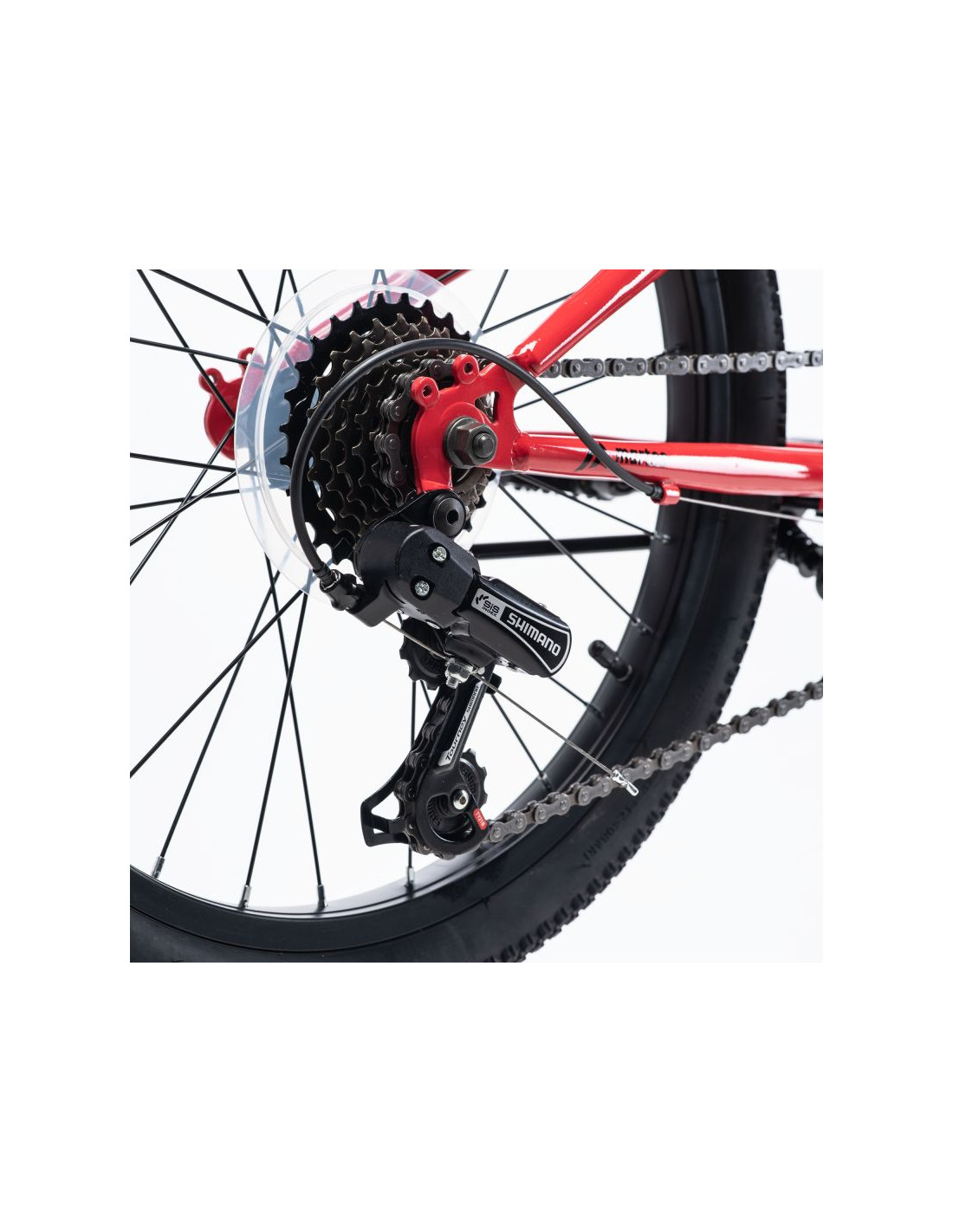 - Tylna przerzutka Shimano Tourney 7-speed oraz manetki Shimano Twist Shifter, zapewniają płynną i łatwą zmianę biegów.
