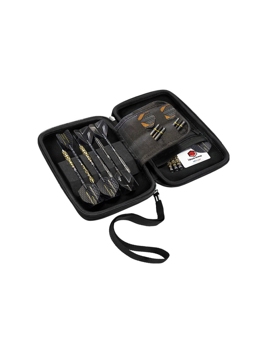 - Specjalnie profilowane przegródki z pianki, w których można przechować 2 w pełni zmontowane zestawy rzutek (6 sztuk).