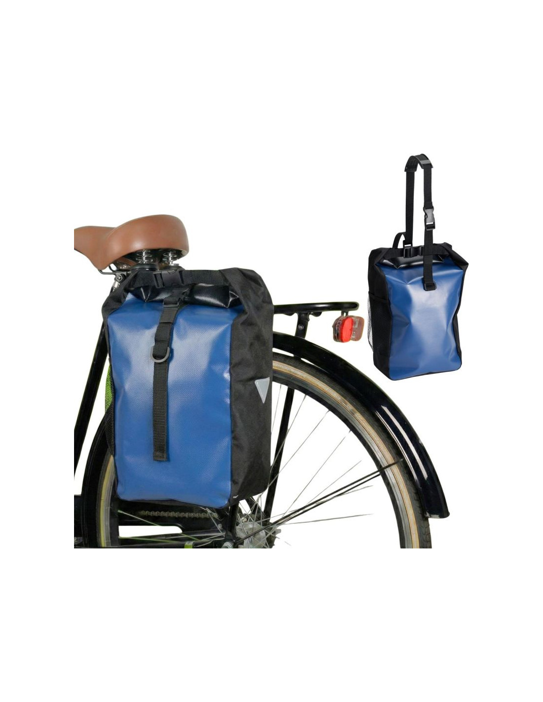 SAKWA TORBA ROWEROWA WODOSZCZELNA TYLNIA NA BAGAŻNIK NIEBIESKA 13,5L XQMAX PRO pozwala mieć przy sobie ubrania, zakupy lub akcesoria rowerowe bez obciążania pleców.