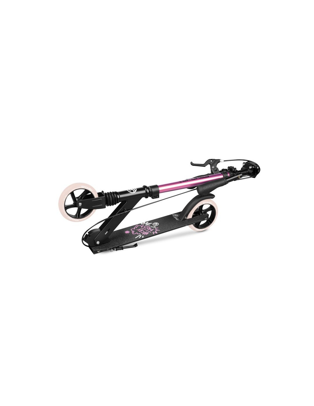 Hulajnoga Vacay Pro to nowoczesna hulajnoga miejska dla dzieci i młodzieży, która może stać się ekologicznym środkiem komunikacji do szkoły, albo świetnym sposobem na zwiedzanie miasta. Wyposażona w koła 145 mm z łożyskami ABEC-7, amortyzator oraz hamulce ręczny i nożny, sprawdzi się doskonale podczas codziennego użytku. Kluczowe cechy: Regulowana wysokość kierownicy: trzy poziomy (82, 87, 93 cm). Wysokiej klasy łożyska ABEC-7: wytrzymałe i zapewniające płynną jazdę.. Podwójne hamulce: ręczny i nożny dla większej kontroli. Amortyzator: zapewnia redukcja drgań pod kolumną kierownicy. Składana konstrukcja: szybki system składania. Lekki i wytrzymały materiał: anodowane aluminium. Antypoślizgowy deck i stopka: wygoda jazdy i stabilność podczas postoju. Hulajnoga Vacay Pro to doskonały sprzęt do rekreacyjnej jazdy dla dzieci i młodzieży. Wyposażona w wytrzymałe koła PU o średnicy 145 mm i twardości 82A, zapewnia płynne poruszanie się po różnych nawierzchniach. Wysokiej klasy łożyska ABEC-7 dodatkowo zwiększają komfort jazdy, a amortyzator minimalizuje drgania, poprawiając wrażenia z użytkowania. Hulajnoga posiada regulowaną wysokość kierownicy, dzięki czemu może rosnąć razem z dzieckiem. Podwójny system hamowania: ręczny oraz nożny, a antypoślizgowy deck zapobiega ślizganiu się podczas jazdy zapewniając większą kontrolę nad Vacay Pro. Funkcja szybkiego składania oraz lekkie, anodowane aluminium sprawiają, że hulajnoga jest łatwa w przenoszeniu i przechowywaniu. To produkt spełniający normy EN-14619, dedykowany dla początkujących i średniozaawansowanych użytkowników. Dlaczego warto wybrać hulajnogę Vacay Pro? Komfort jazdy: amortyzator i łożyska ABEC-7 dla płynności ruchu. Kontrola jazdy: podwójny system hamulców i antypoślizgowy deck. Praktyczność: szybki system składania i lekkie materiały. Trwałość: anodowana konstrukcja odporna na uszkodzenia. Uniwersalność: idealna do rekreacyjnej jazdy dla dzieci i młodzieży. Dane techniczne Materiał: aluminium, anoda Łożyska: ABEC-7 Carbon Koła: 82A PU, 145 mm Wymiary hulajnogi: 93 x 74 x 42 cm Wymiary po złożeniu: 66 x 11 x 29 cm Regulowana wysokość: 82-87-93 cm Hamulec: nożny, ręczny Waga: 3,8 kg Maksymalna waga użytkownika: 100 kg Norma: EN-14619 Polecany do: jazda rekreacyjna Poziom zaawansowania: początkujący, średniozaawansowany Dodatkowe funkcje: amortyzator przedni, stopka, szybki system składania. Uwagi dotyczące bezpieczeństwa: Należy stosować środki ochrony indywidualnej. Nie nadaje się dla dzieci o masie ciała większej niż 100 kg Do stosowania pod nadzorem osoby dorosłej. Nie używać w ruchu ulicznym. Instrukcja użytkowania