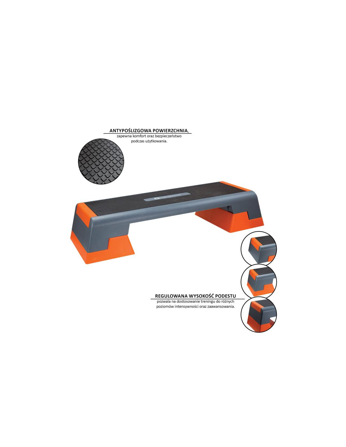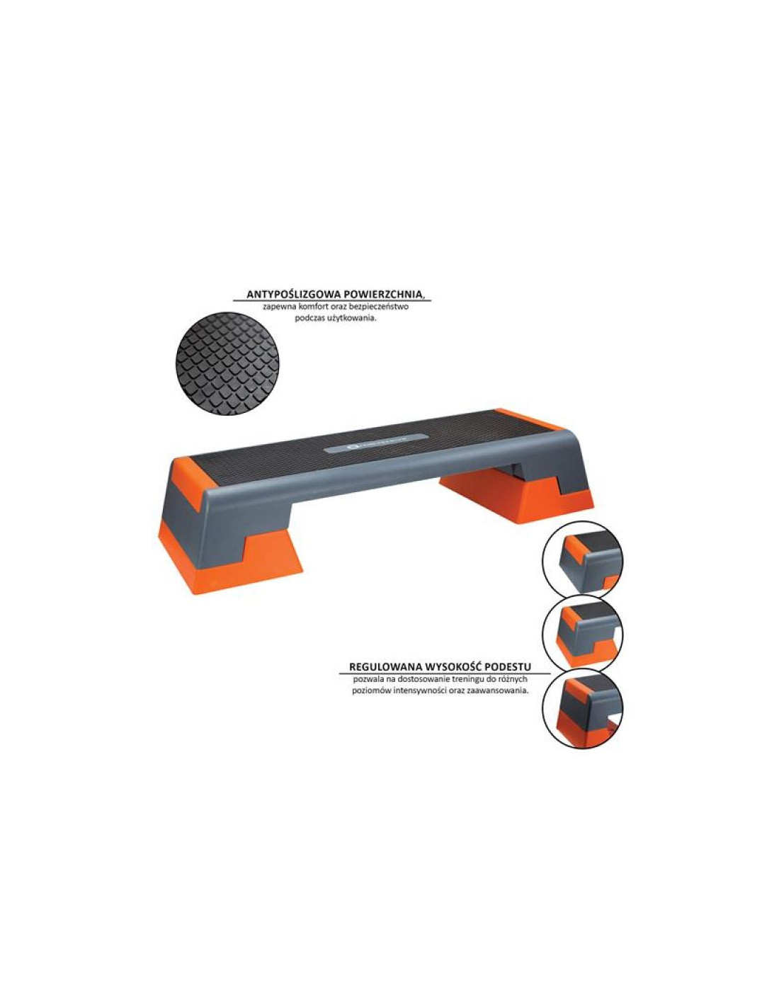 Regulowana wysokość podestu pozwala na dostosowanie treningu do różnych poziomów intensywności oraz zaawansowania.