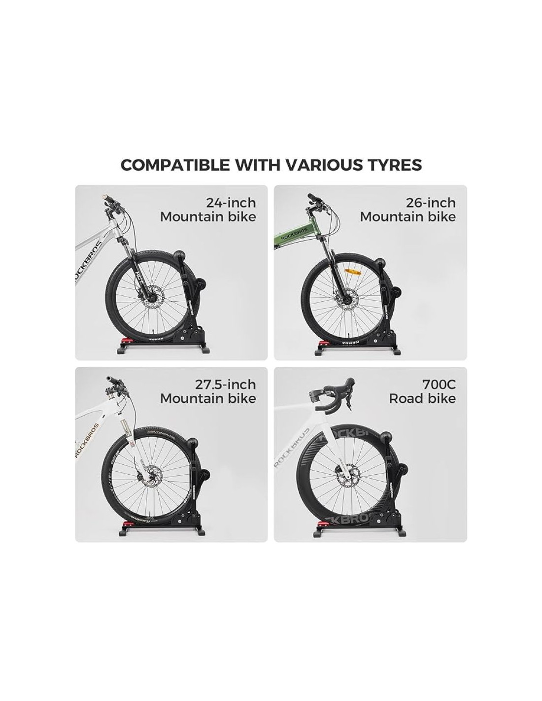 - Szeroka kompatybilność: stojak jest kompatybilny z rowerami wyścigowymi, rowerami górskimi 24-27,5" i innymi popularnymi rowerami
