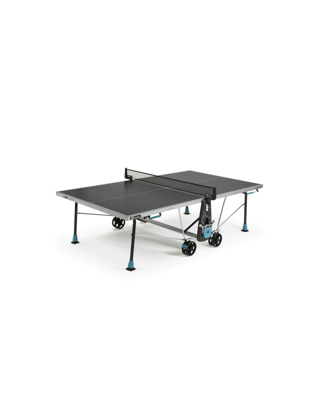 DUŻE KOŁA Z HAMULCAMI: Stoły ping pongowe Cornilleau posiadają duże podwójne koła o grubości 32 mm i średnicy 200 mm. Takie rozwiązanie zwiększa toczenie kół oraz stabilność stołu. Większe koło z łatwością wtoczy się przez duże przeszkody takie jak schody, progi kamienie. Łatwiej pokonuje gęstą trawę i inne nierówności, z kolei dwa hamulce zapewniają doskonałą stabilność i bezpieczeństwo podczas gry. Jest to także szczególnie przydatne gdy stół jest przechowywany na lekko nierównej powierzchni.