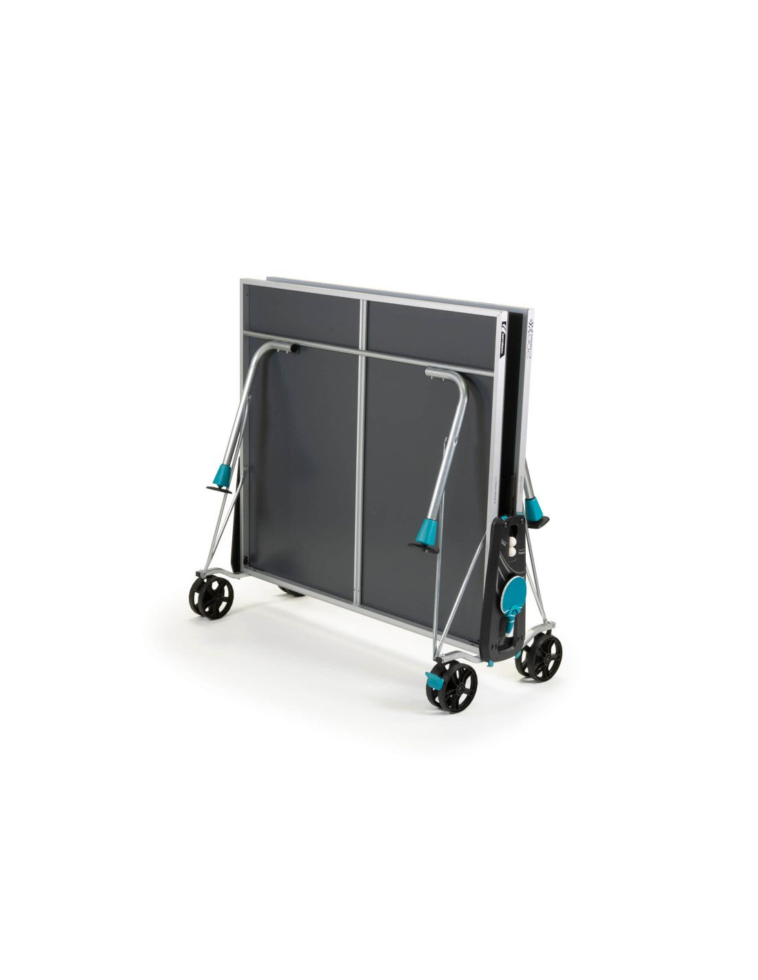DUŻE KOŁA Z HAMULCAMI: Stoły ping pongowe Cornilleau posiadają duże podwójne koła o grubości 32 mm i średnicy 200 mm. Takie rozwiązanie zwiększa toczenie kół oraz stabilność stołu. Większe koło z łatwością wtoczy się przez duże przeszkody takie jak schody, progi kamienie. Łatwiej pokonuje gęstą trawę i inne nierówności, z kolei dwa hamulce zapewniają doskonałą stabilność i bezpieczeństwo podczas gry. Jest to także szczególnie przydatne gdy stół jest przechowywany na lekko nierównej powierzchni.