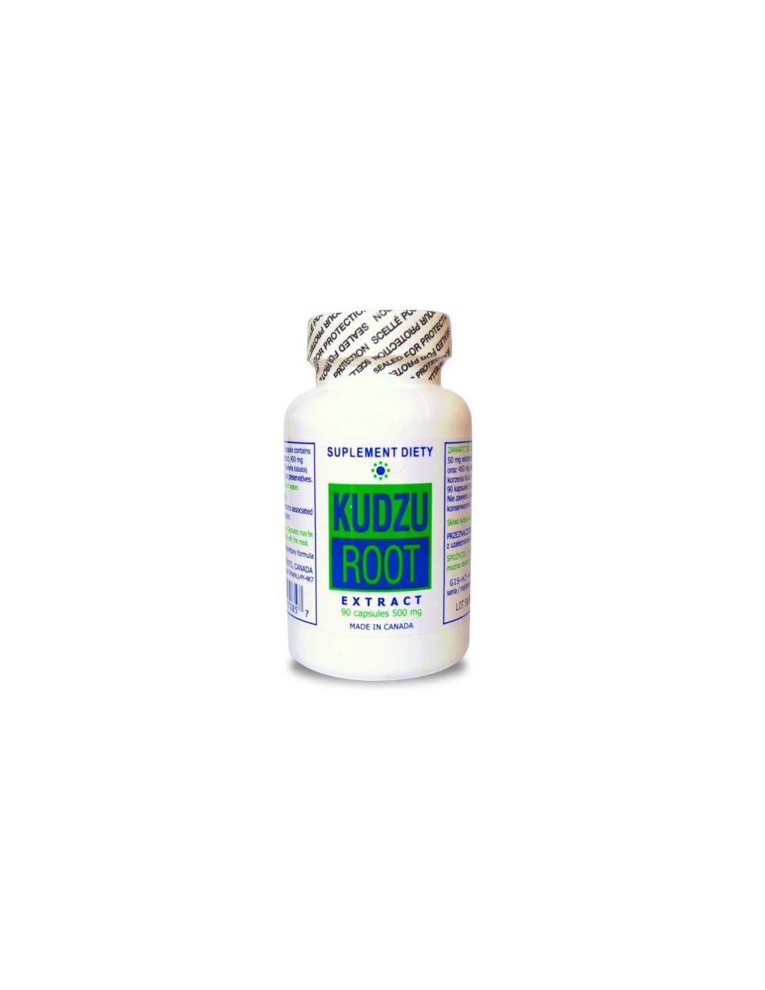 SKŁADNIKI: Każda kapsułka zawiera 450 mg proszkowanego korzenia Kudzu, 50 mg ekstraktu z korzenia Kudzu. Produkt bezglutenowy. Kapsułka żelatynowa. Opakowanie 90 kaps masa netto 45 g.