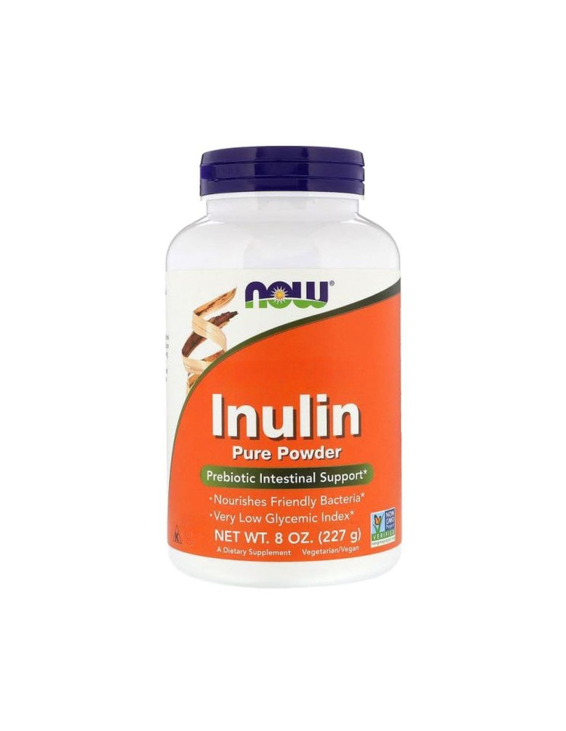 Inulina, fruktooligosacharyd (FOS), to rozpuszczalny błonnik prebiotyczny, który jest odporny na trawienie i dociera do jelita grubego zasadniczo nienaruszony. Bakterie probiotyczne jelitowe spożywają inulinę, a te z kolei wytwarzają krótkołańcuchowe kwasy tłuszczowe, które odżywiają komórki wyściełające okrężnicę. Inulina pomaga w ten sposób utrzymać zdrowie jelit i funkcjonowanie. Inulina ma przyjemny smak, który dodaje łagodnej słodyczy potrawom i napojom, ale ma bardzo niski indeks glikemiczny i nie wpłynie negatywnie na poziom glukozy w surowicy.