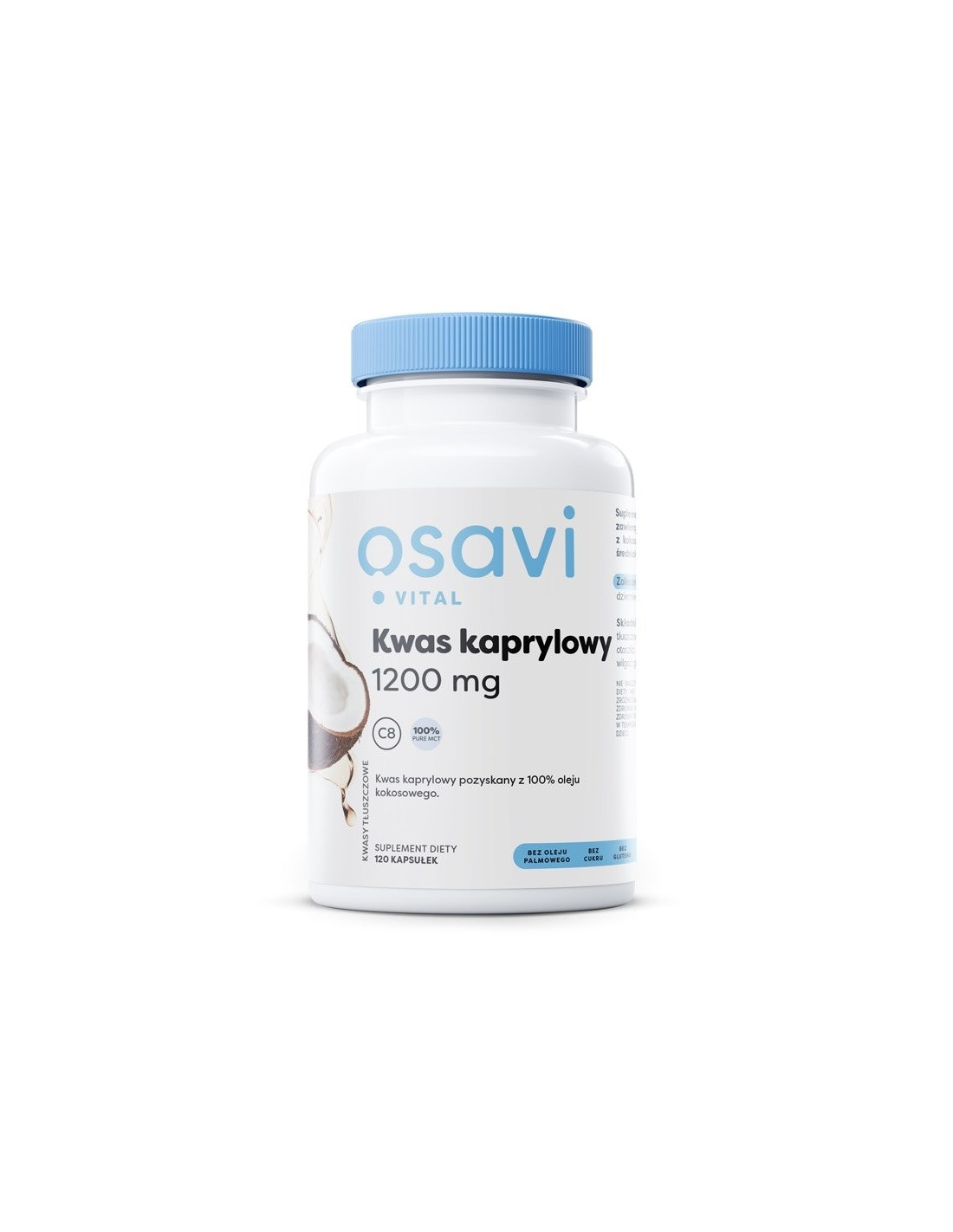 Kwas kaprylowy jest średniołańcuchowym kwasem tłuszczowym. Bez oleju palmowego.