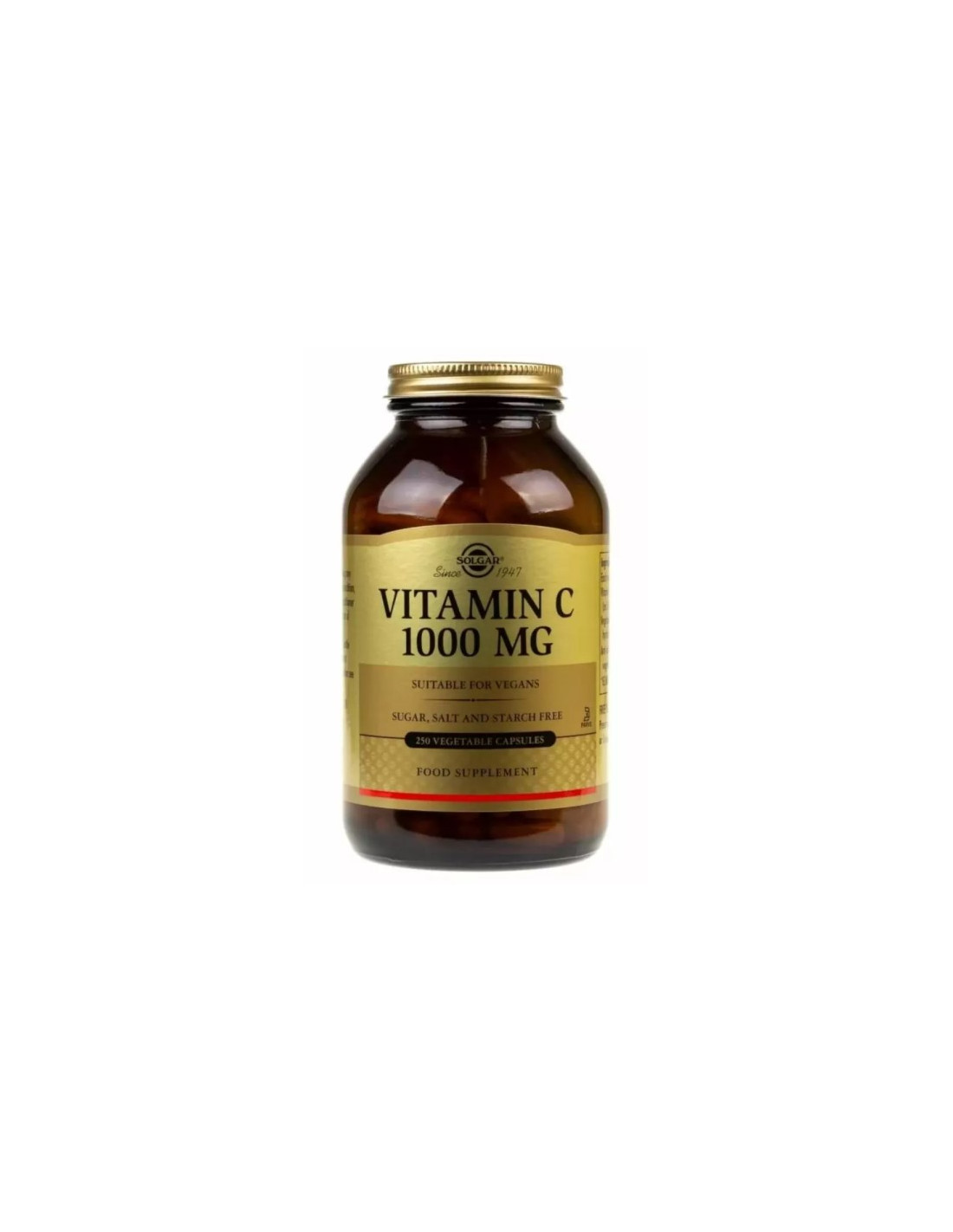 SKŁADNIKI: Witamina C jako kwas L-askorbinowy; otoczka kapsułki roślinnej: hydroksypropylometyloceluloza; substancja glazurująca: etyloceluloza; substancja przeciwzbrylająca: roślinne sole magnezowe kwasów tłuszczowych.